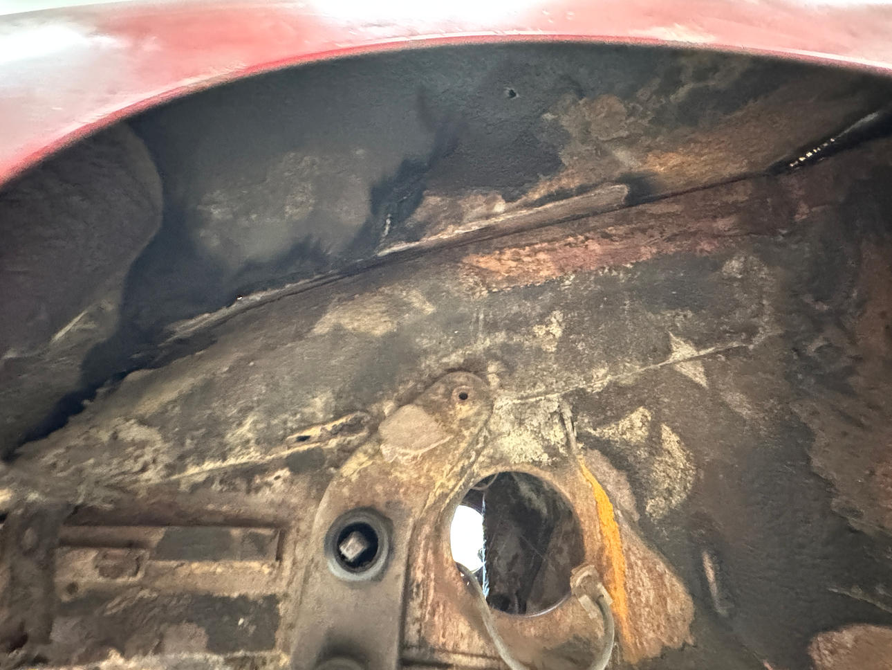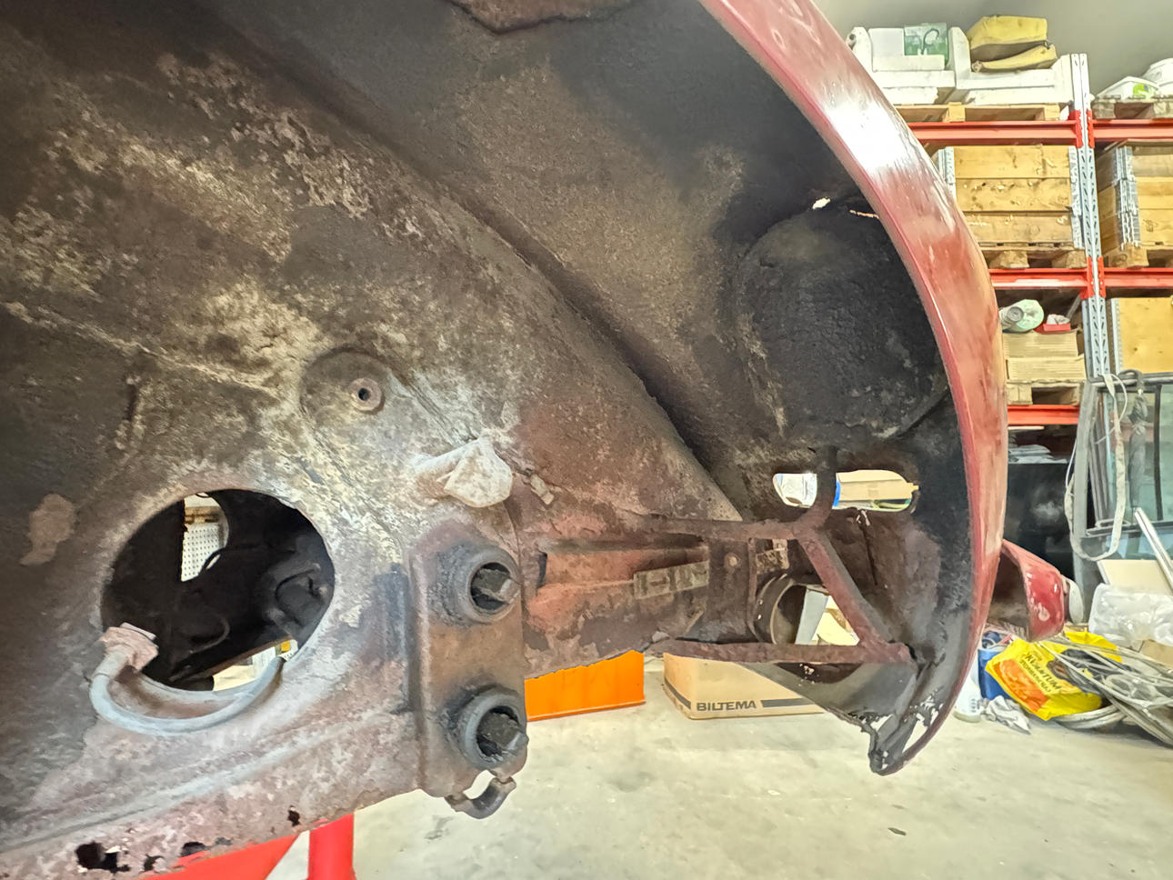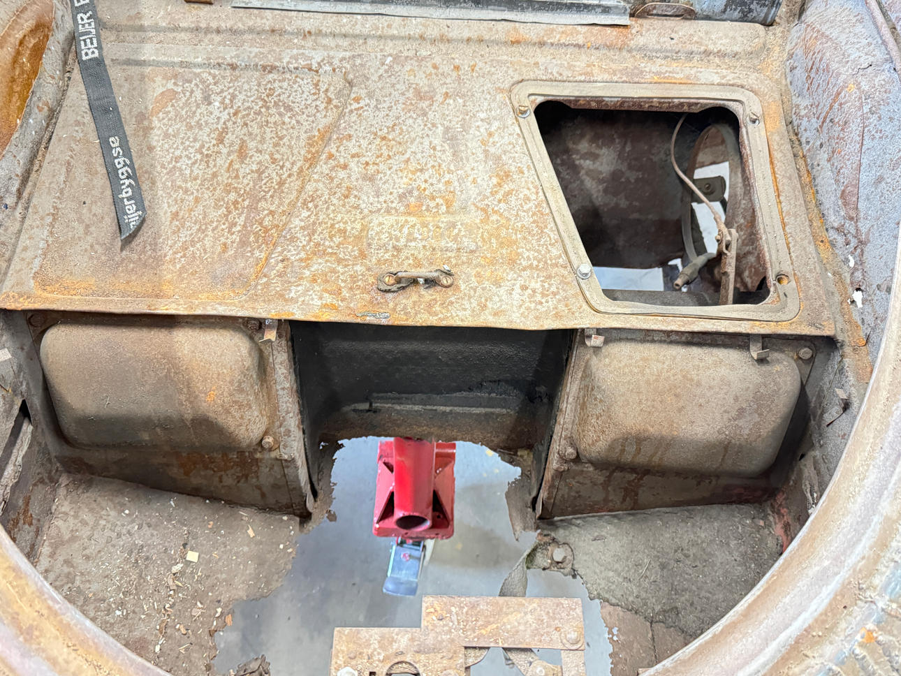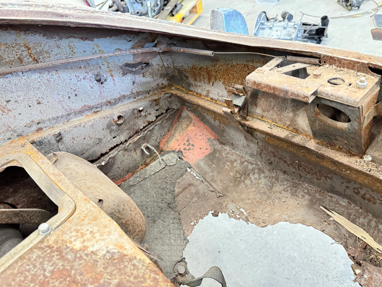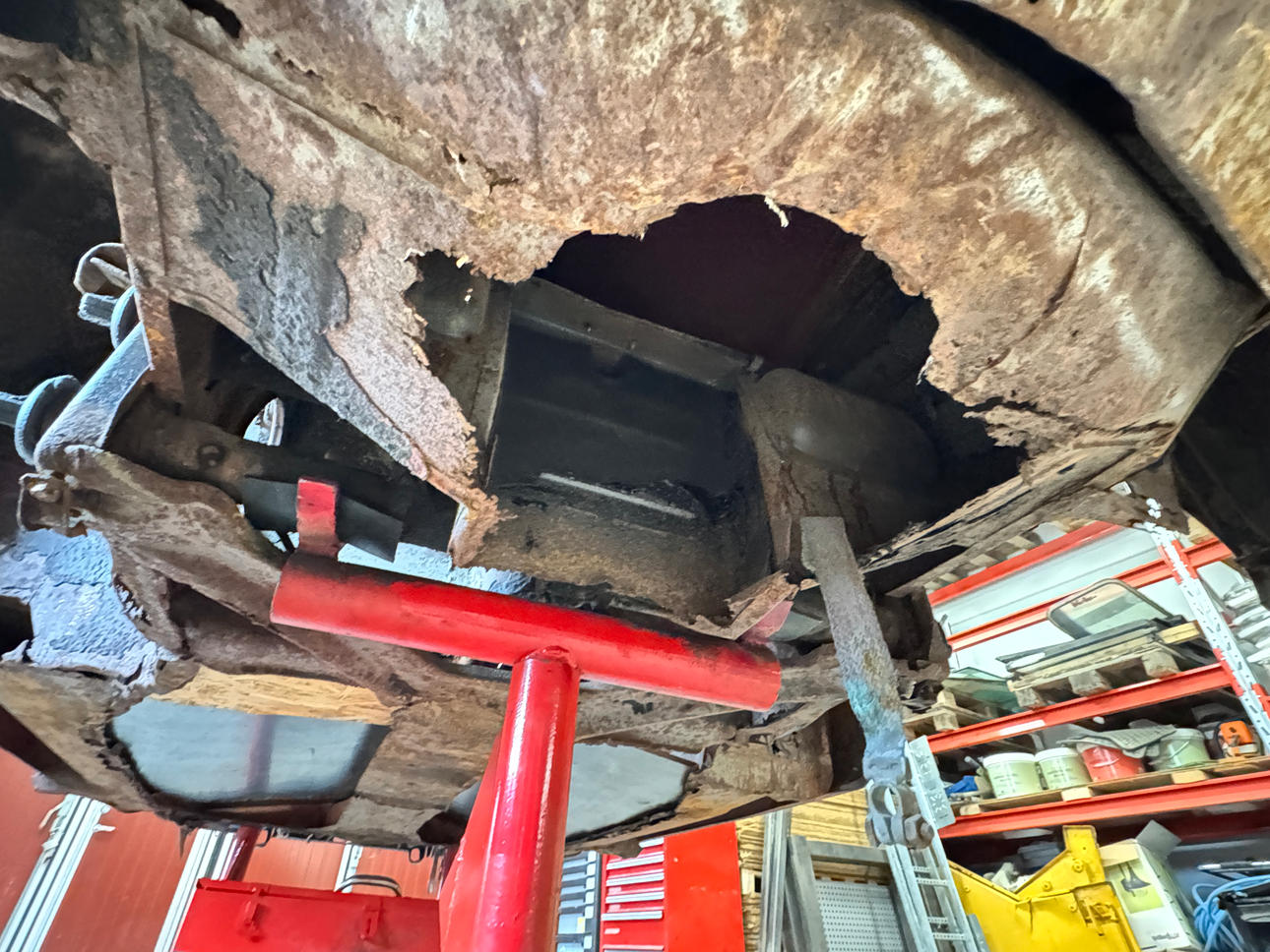 Varapyörän altaan lattia on pahasti ruostevaurioitunut, mutta muuten hyvässä kunnossa. Katso kuvat