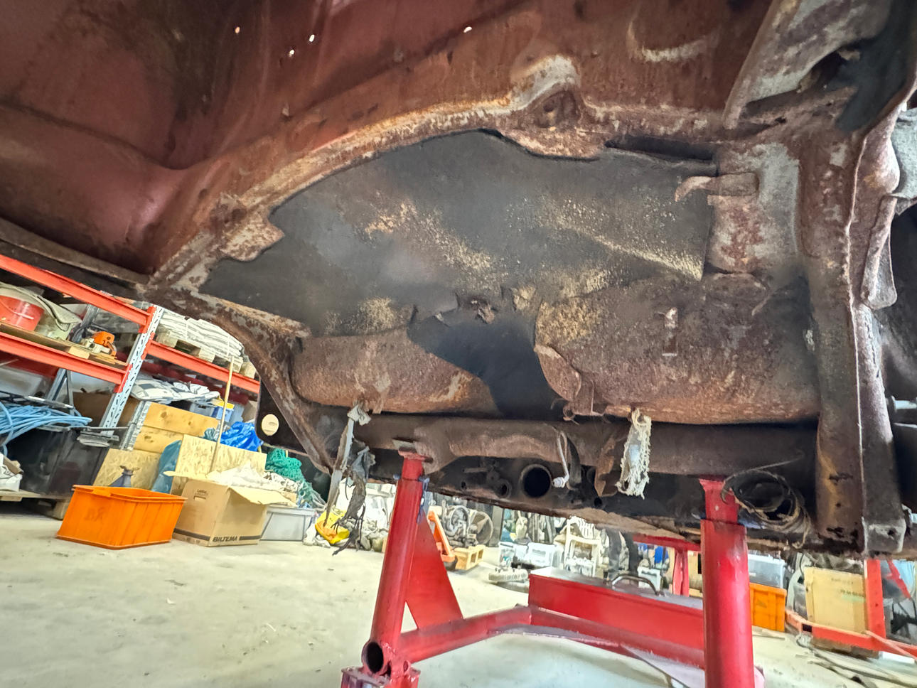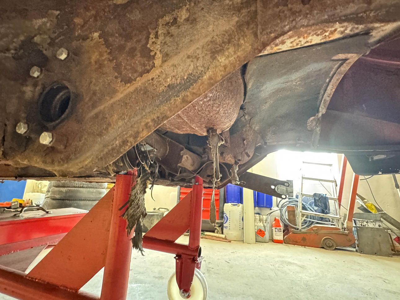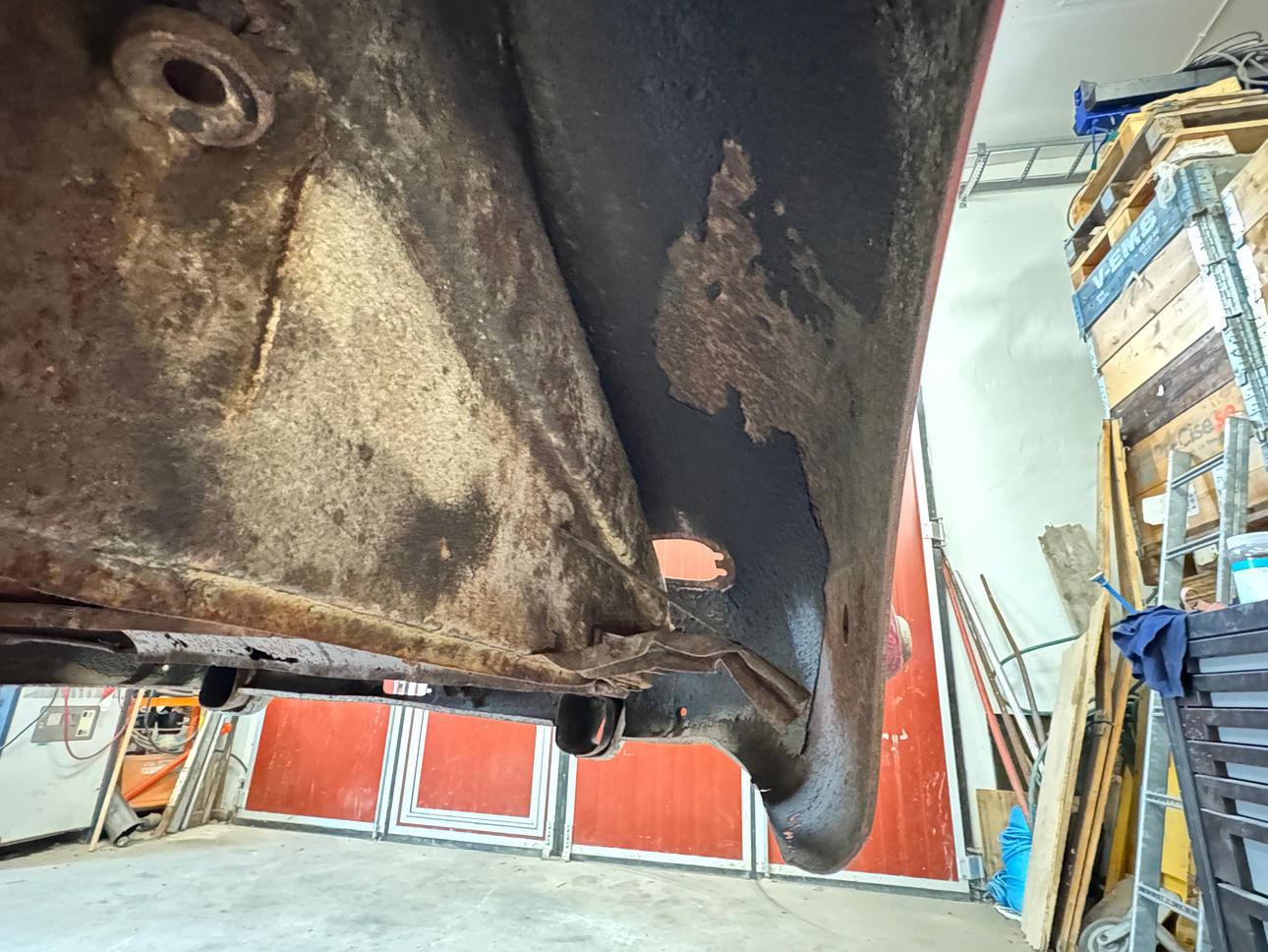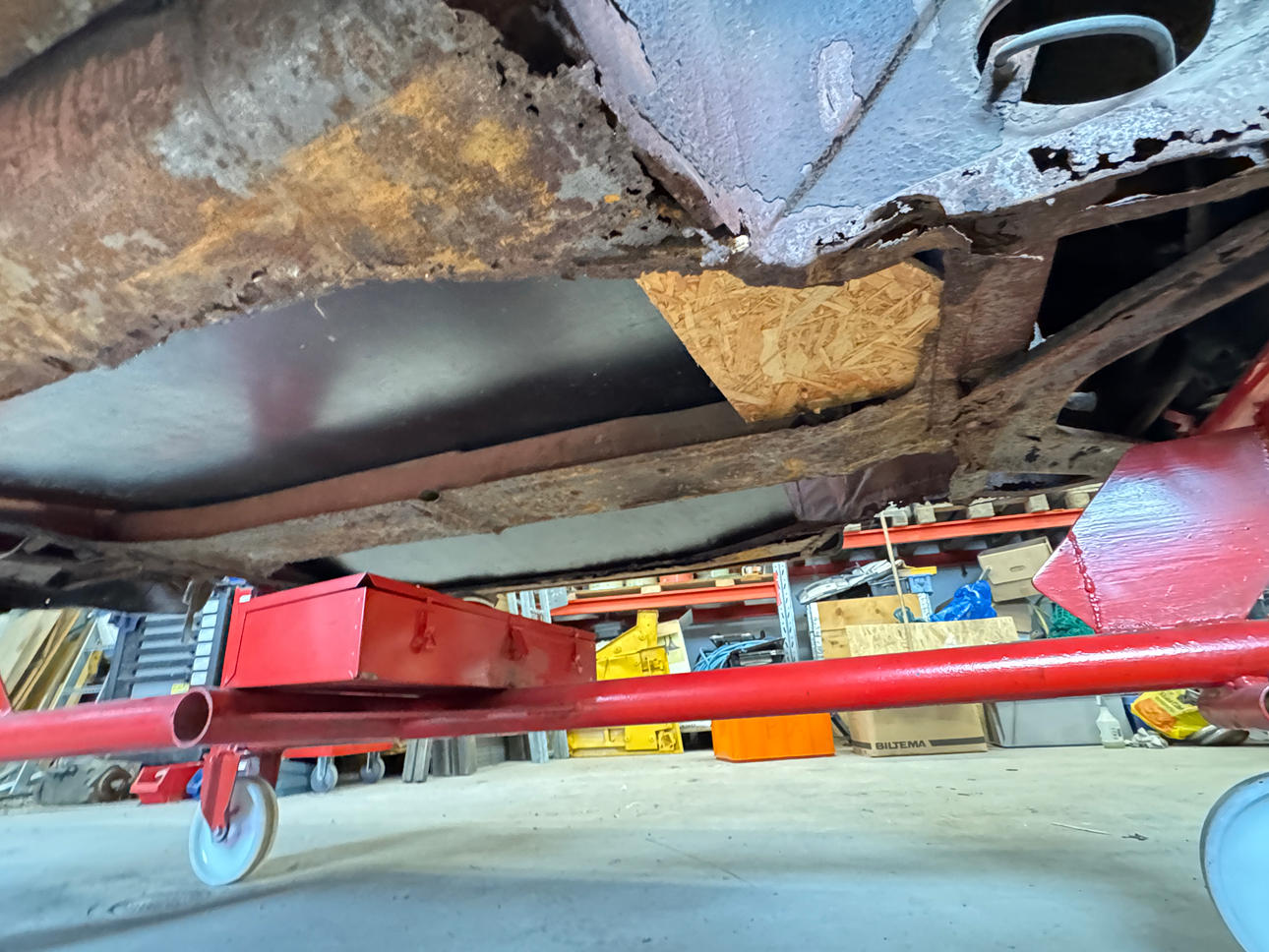 Varapyörän altaan lattia on pahasti ruostevaurioitunut, mutta muuten hyvässä kunnossa. Katso kuvat