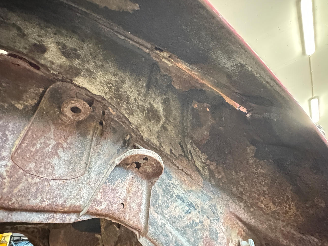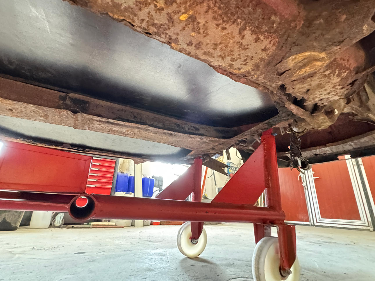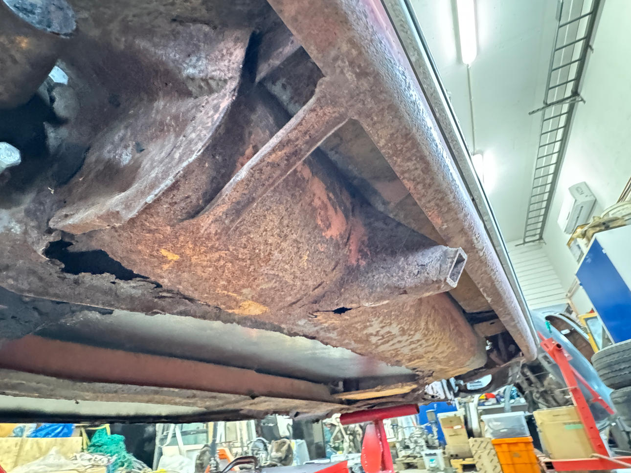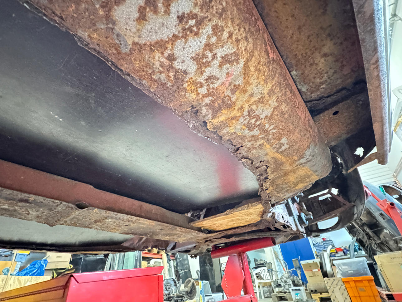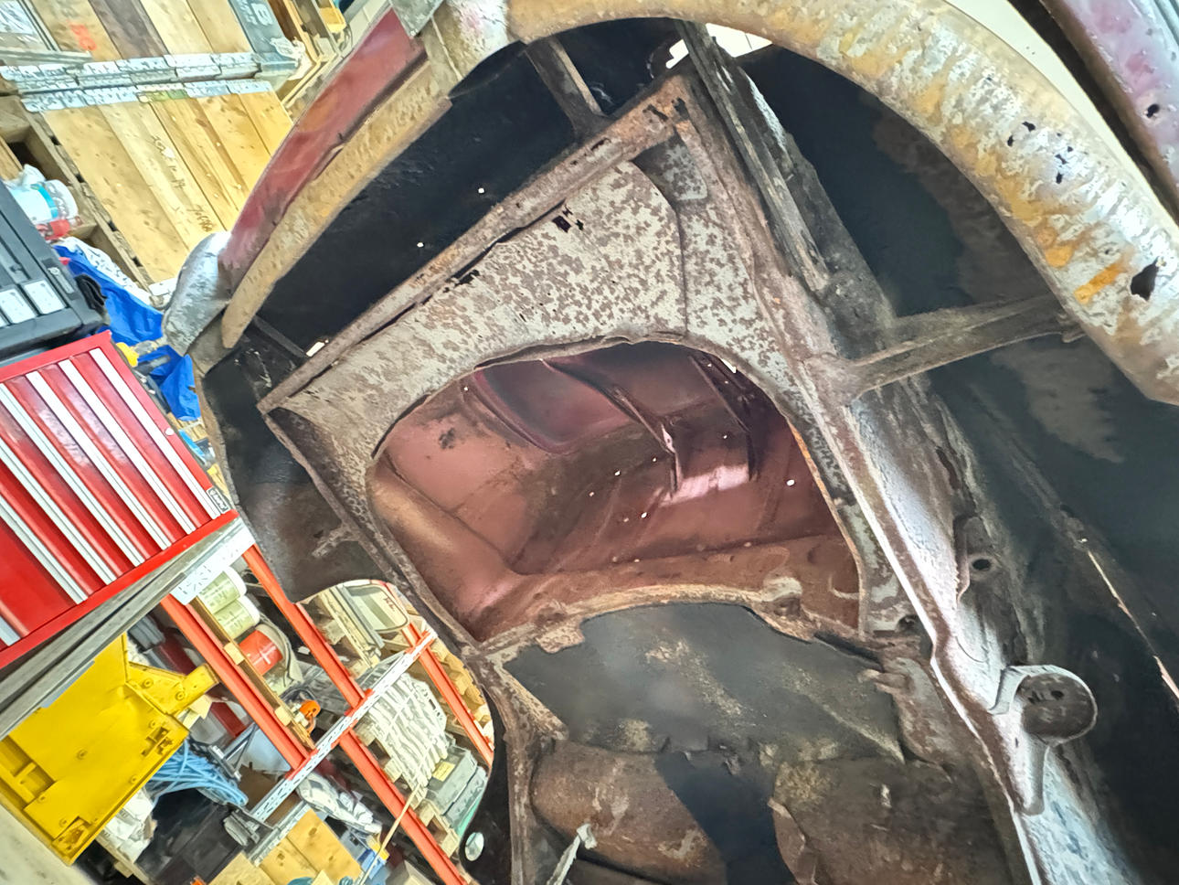 Varapyörän altaan lattia on pahasti ruostevaurioitunut, mutta muuten hyvässä kunnossa. Katso kuvat