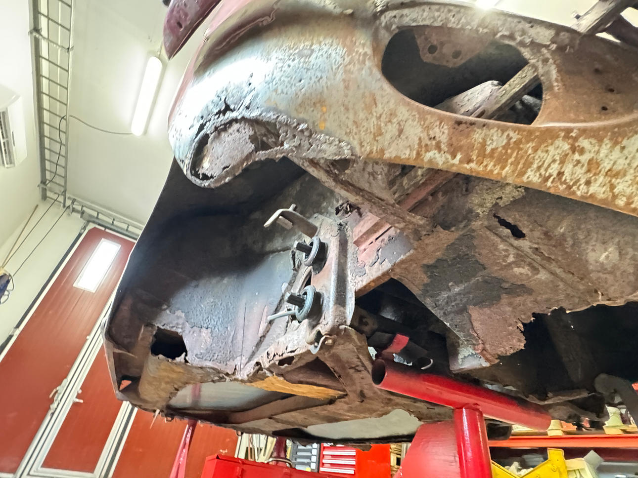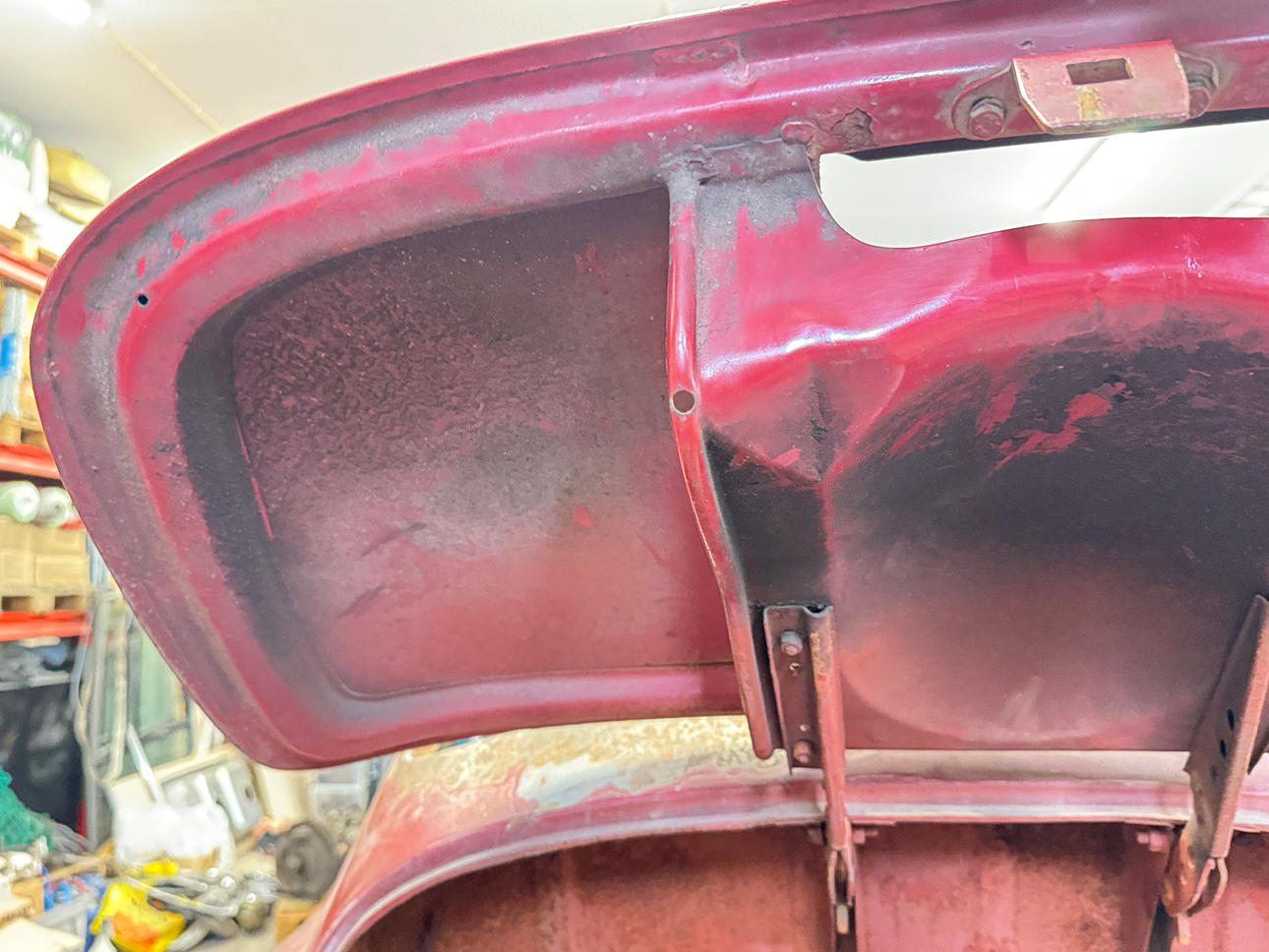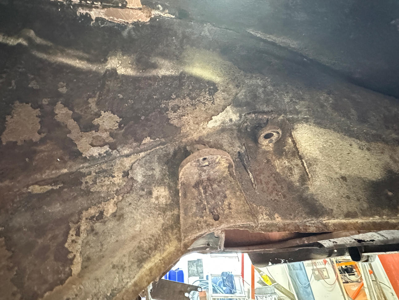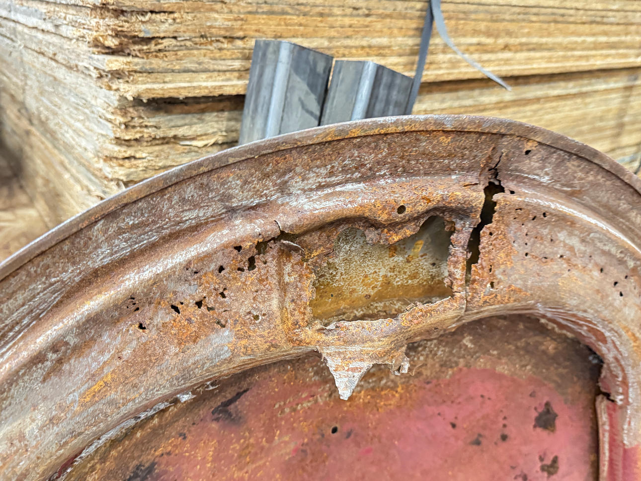 Varapyörän altaan lattia on pahasti ruostevaurioitunut, mutta muuten hyvässä kunnossa. Katso kuvat
