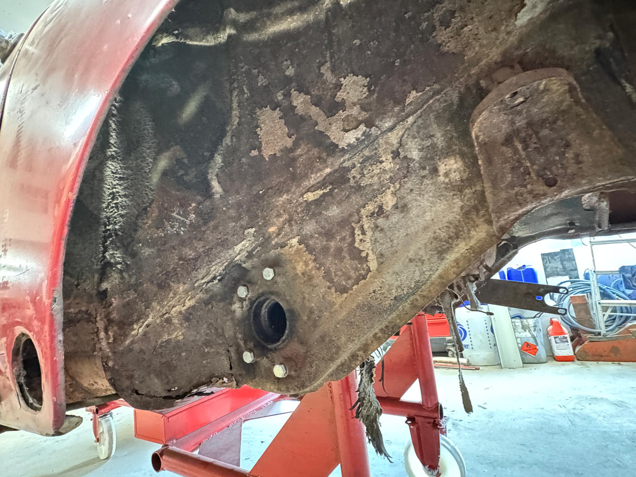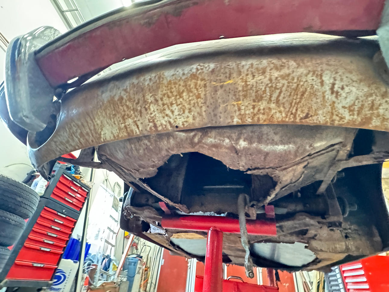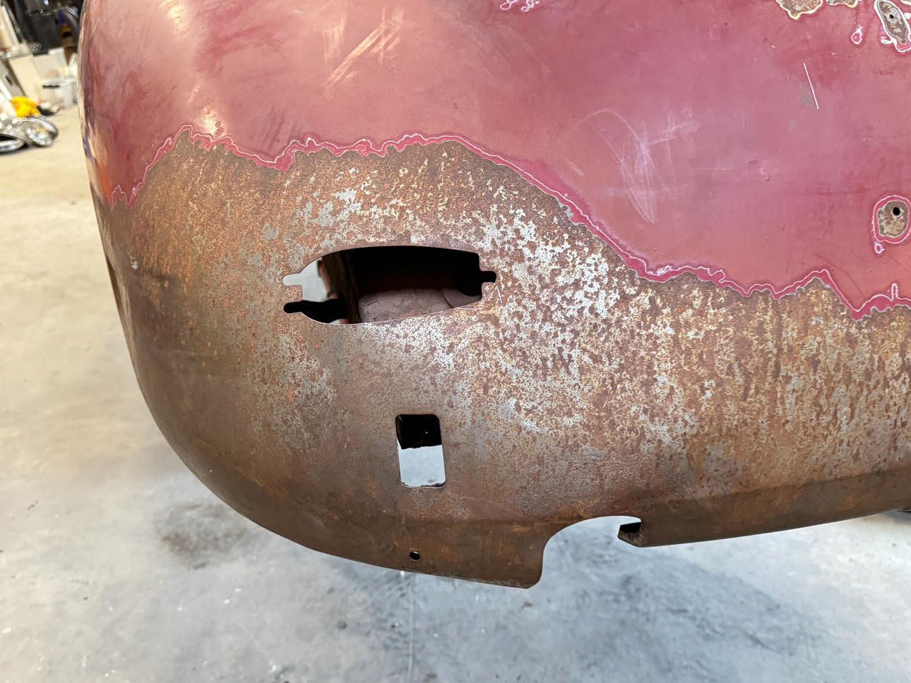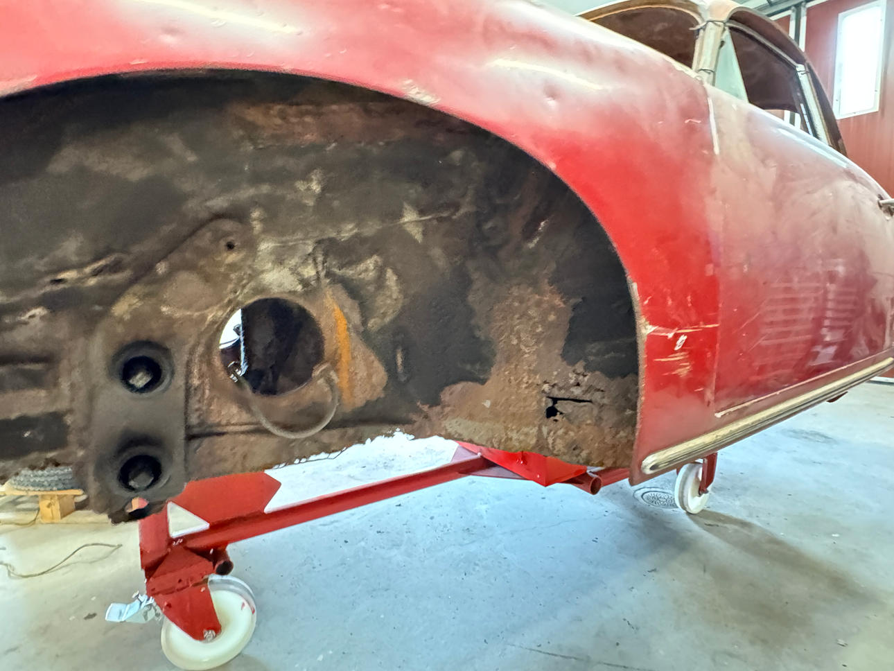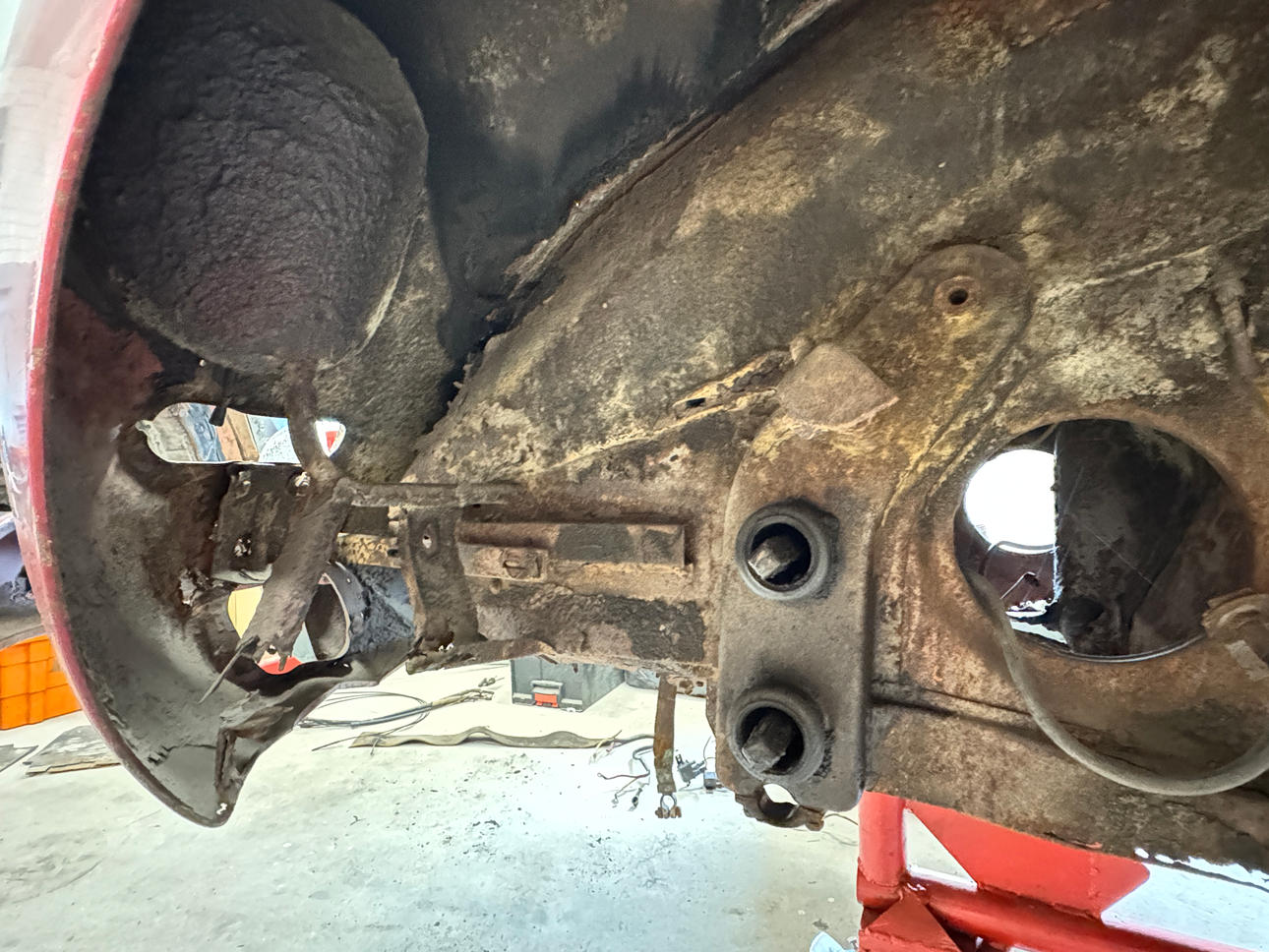 Varapyörän altaan lattia on pahasti ruostevaurioitunut, mutta muuten hyvässä kunnossa. Katso kuvat