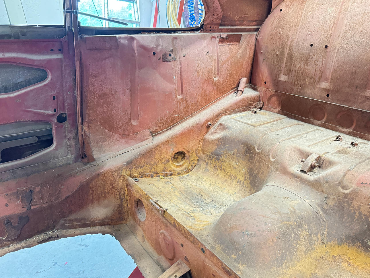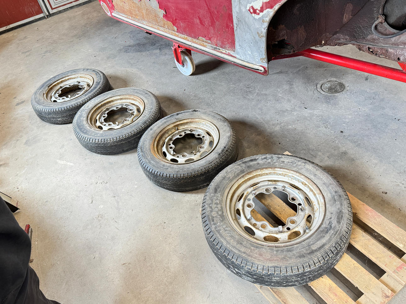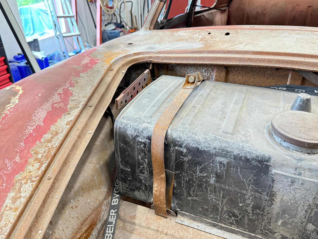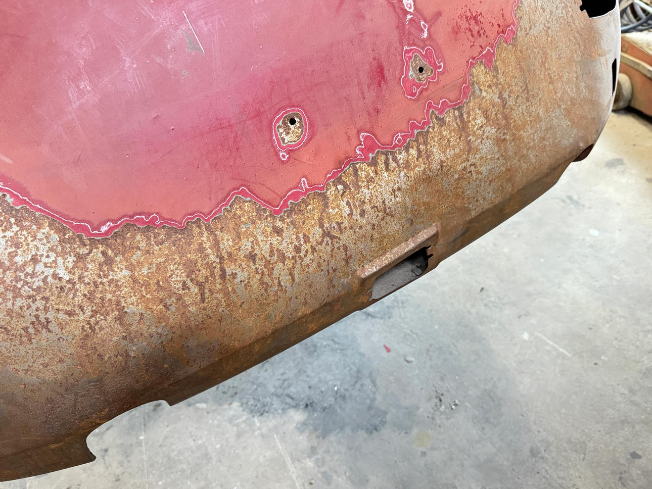 Varapyörän altaan lattia on pahasti ruostevaurioitunut, mutta muuten hyvässä kunnossa. Katso kuvat