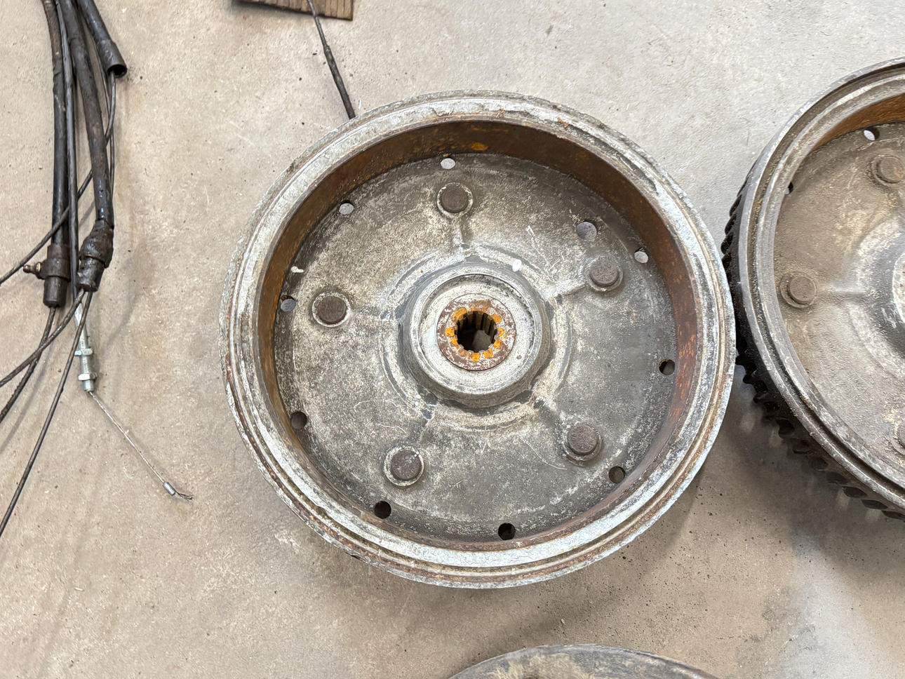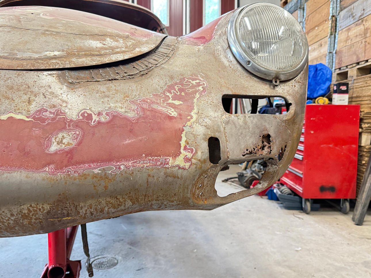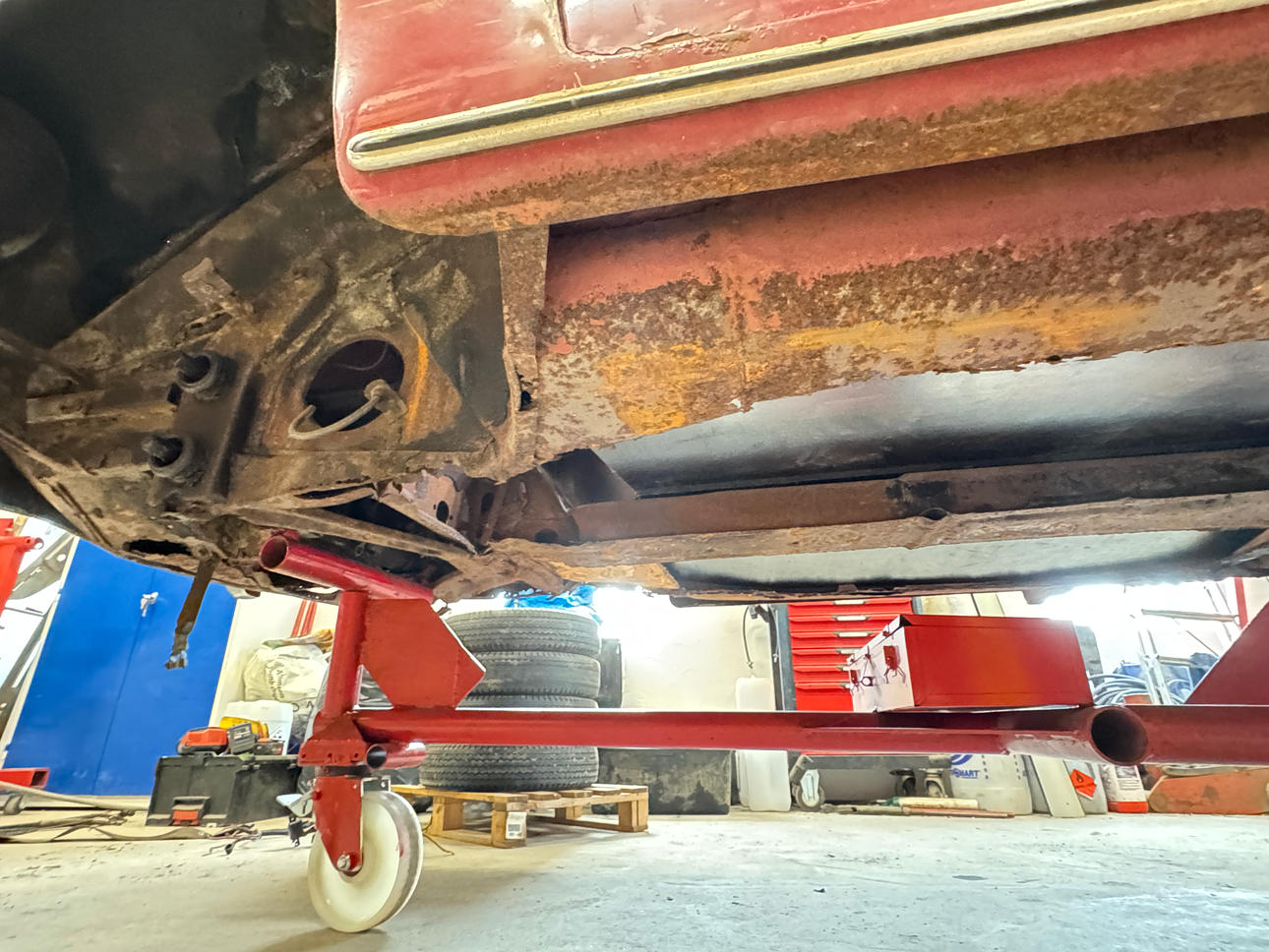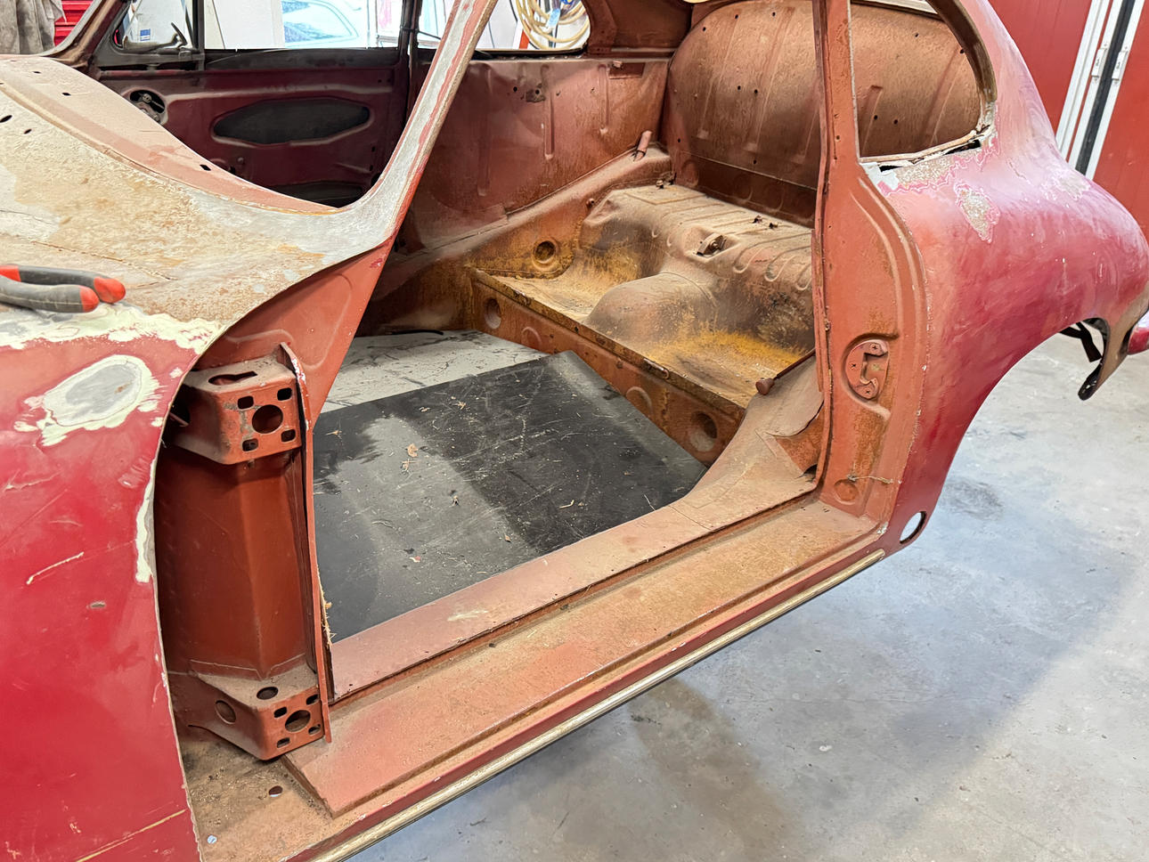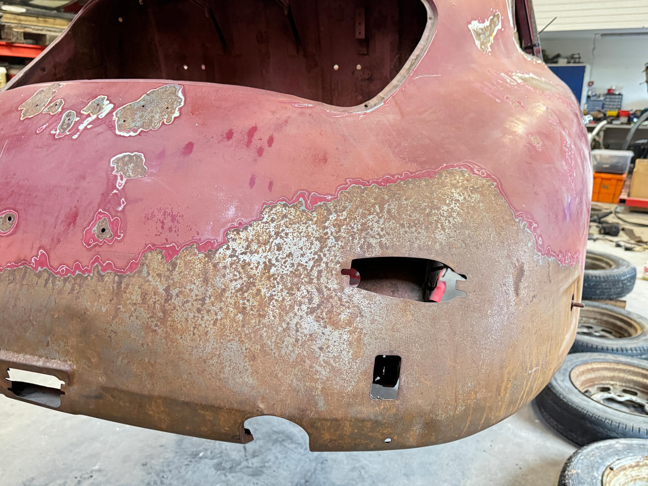 Varapyörän altaan lattia on pahasti ruostevaurioitunut, mutta muuten hyvässä kunnossa. Katso kuvat