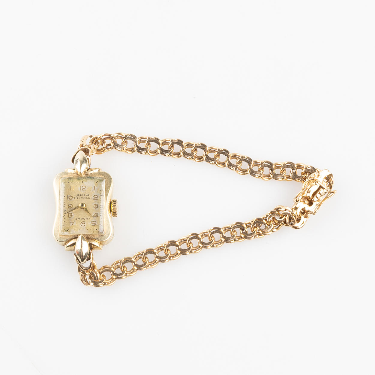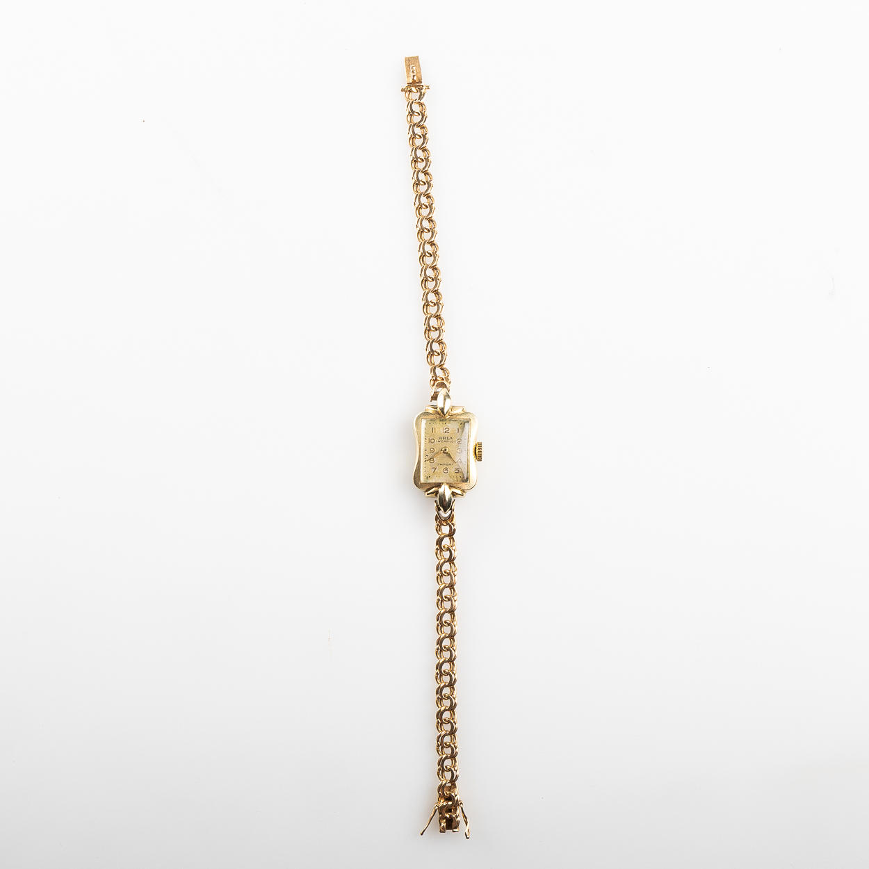 Korukello 14K kultaa, B n. 16 mm. Manuaalinen tehtävä.