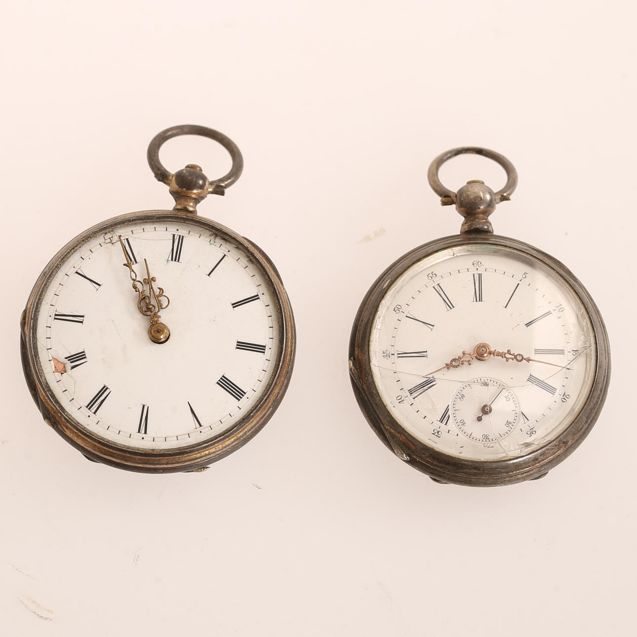 Yksi ilman lasia, toisessa halkeamia lasissa, puuttuvat osat, ei toiminnallisesti testattu.