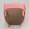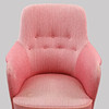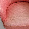 Vaaleanpunainen kangas. Istuinkorkeus 40, leveys 70, syvyys 63, korkeus 86 cm.