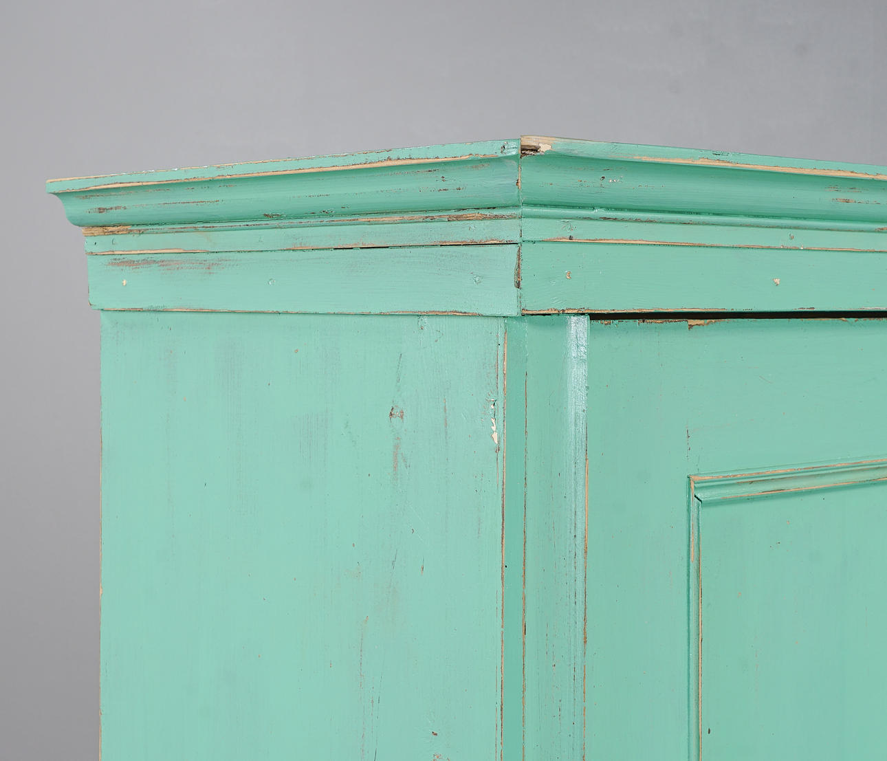 Vihreä maalaus, pallojalat. Sisustus ripustimilla.