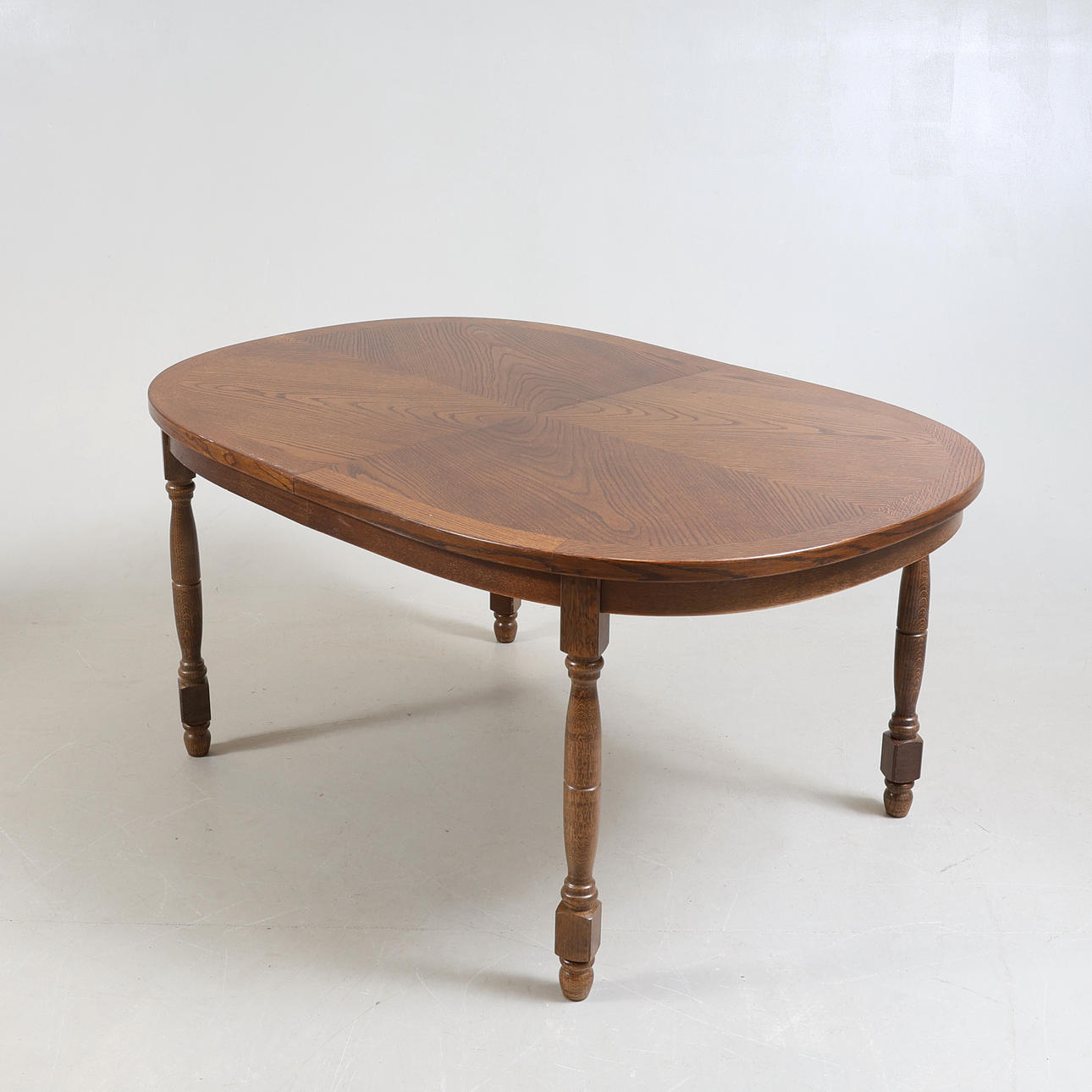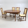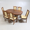 Pöytä pituus 155, leveys 104, korkeus 73 cm 2 kiinnityslevyä, leveys 50 cm 6 tuolia, selkänojan korkeus 101, istuinkorkeus 46, leveys 46 cm.
