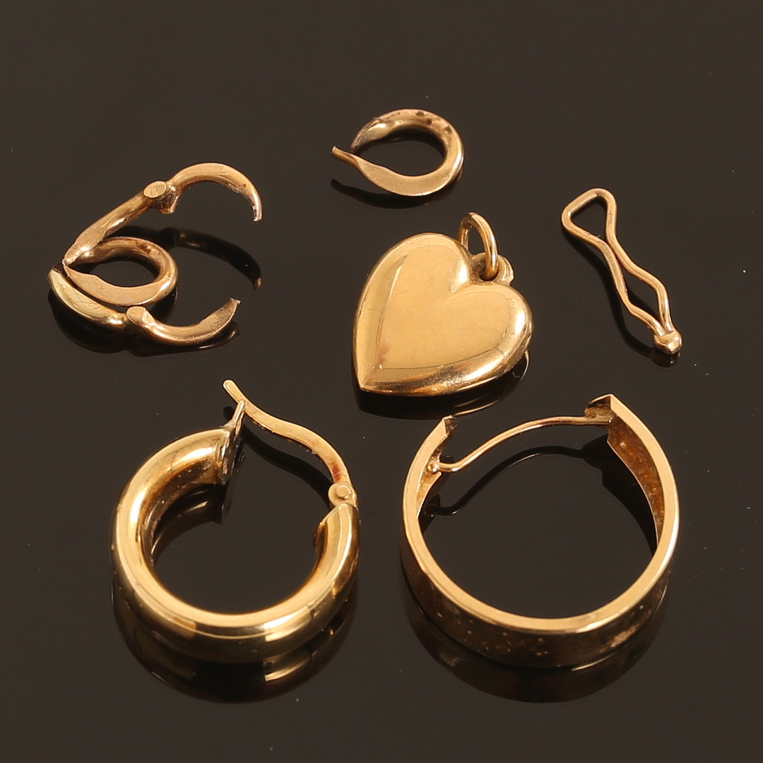 4364604. SEKALAISET KULTA, 6 kpl, 18k kultaa.