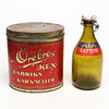 4365587. Metallipurkki ja lasinen kevyt olutpullo.