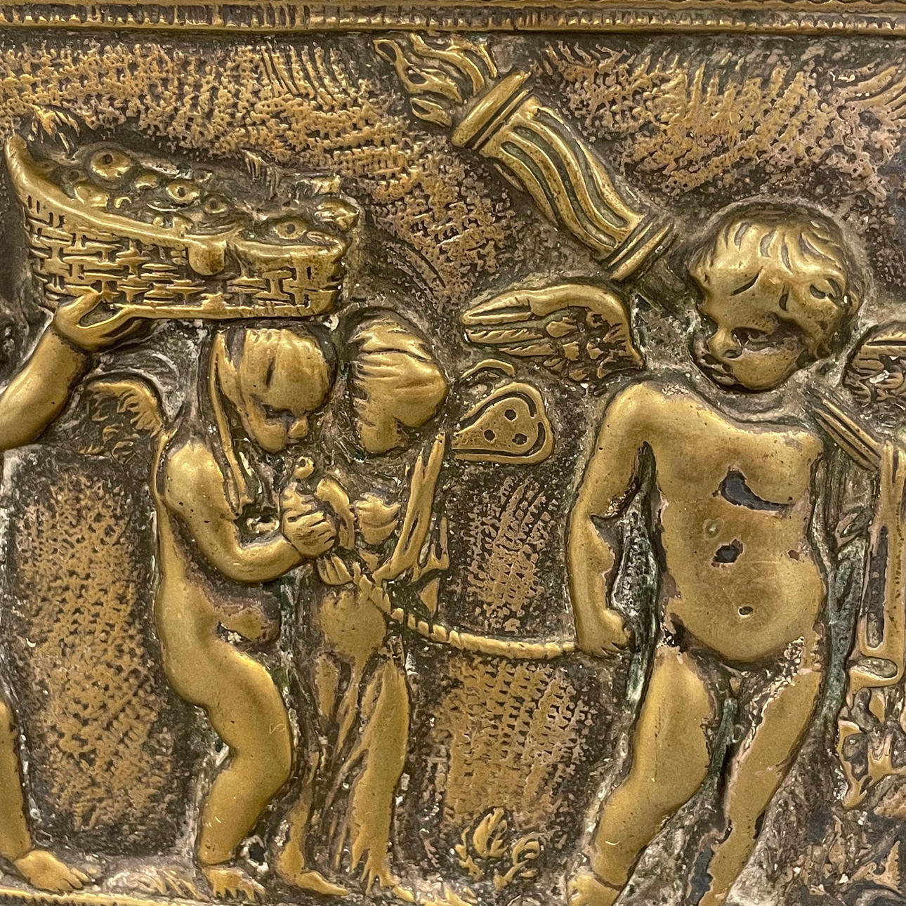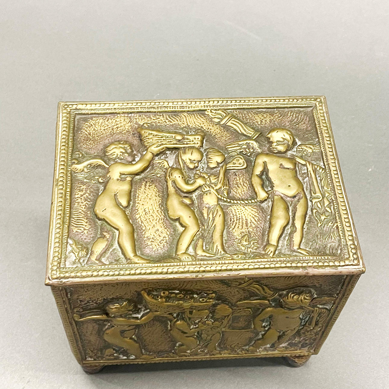 Rasia, pronssi/messinki, 19THC, koko 18cm x 12cm x 14cm.