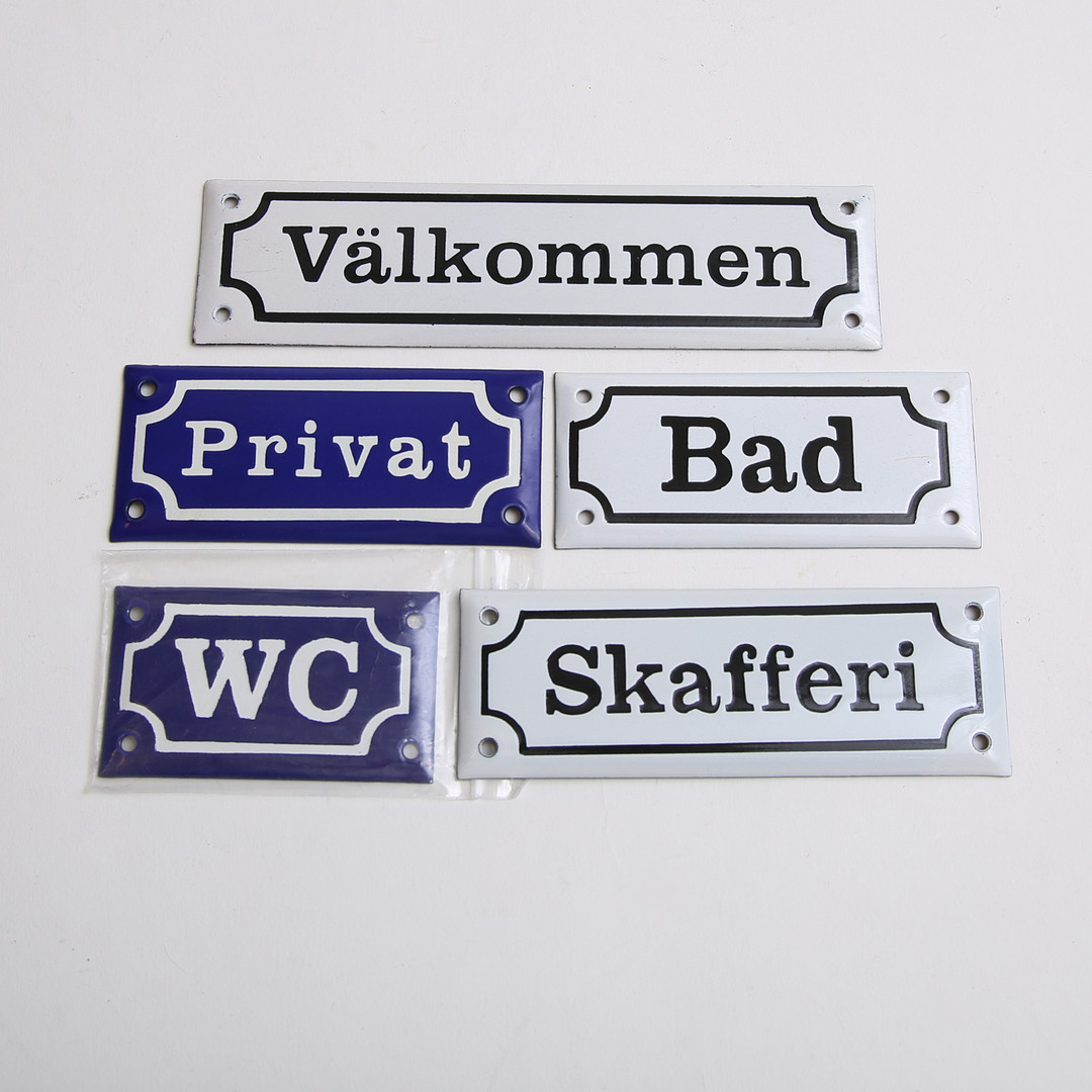 4366587. Emalikyltit, 5 kpl, nykyaikaiset.