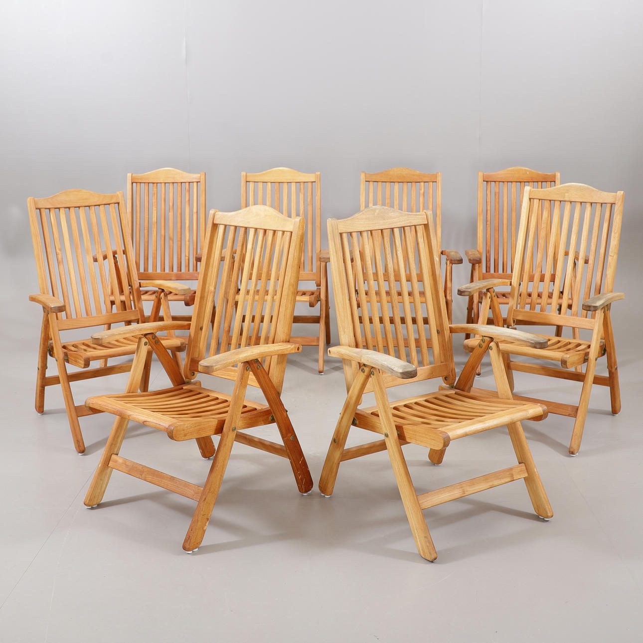4367367. PUUTARHAKALUSTEET, 9 kpl, tiikki.