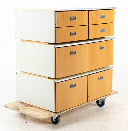 4369394. NILS JA KAJSA NAUHOITUS. Hyllyjärjestelmä, ”String”, 5 osaa, pöytäosa, String Design Stockholm AB 1900-luvun puoliväli.