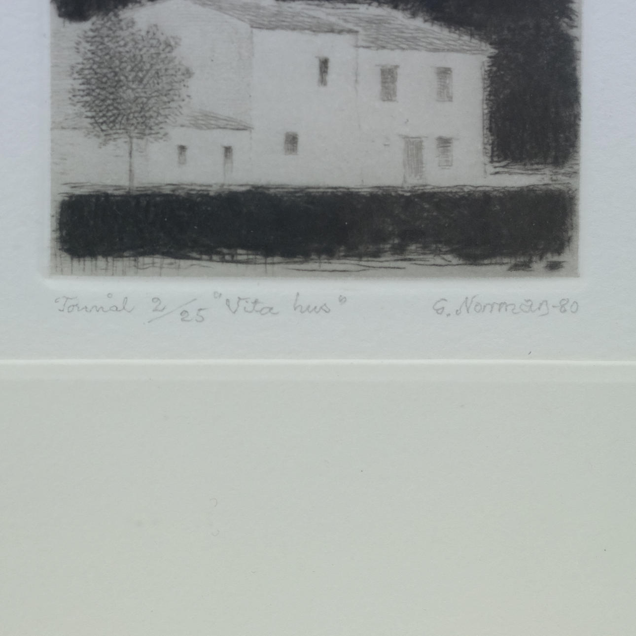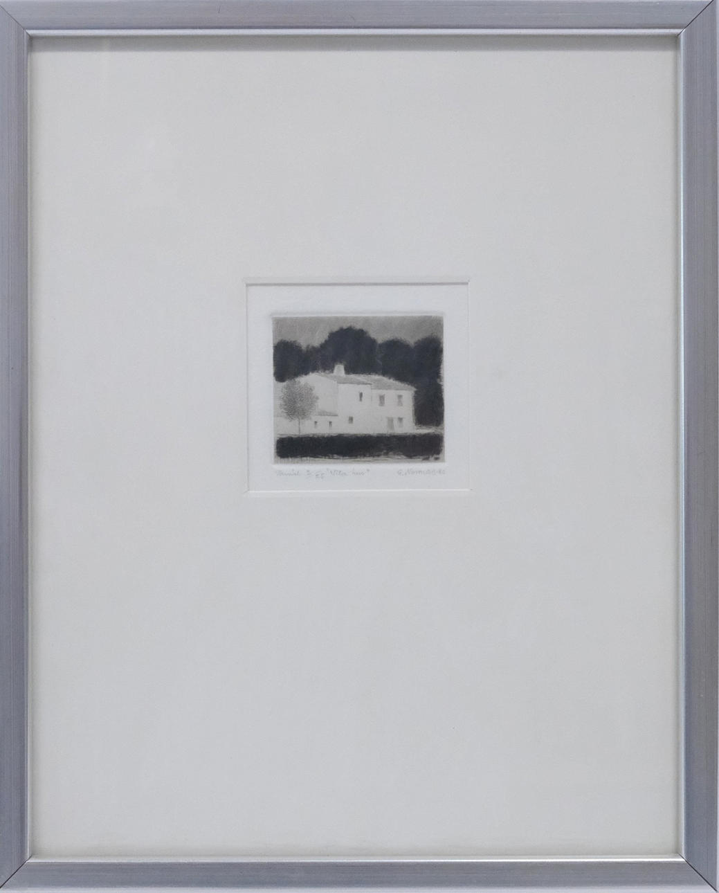 White House, 2/25, signeerattu ja päivätty -80, mitat 7x6,5cm, rungon mitat 23x28cm.