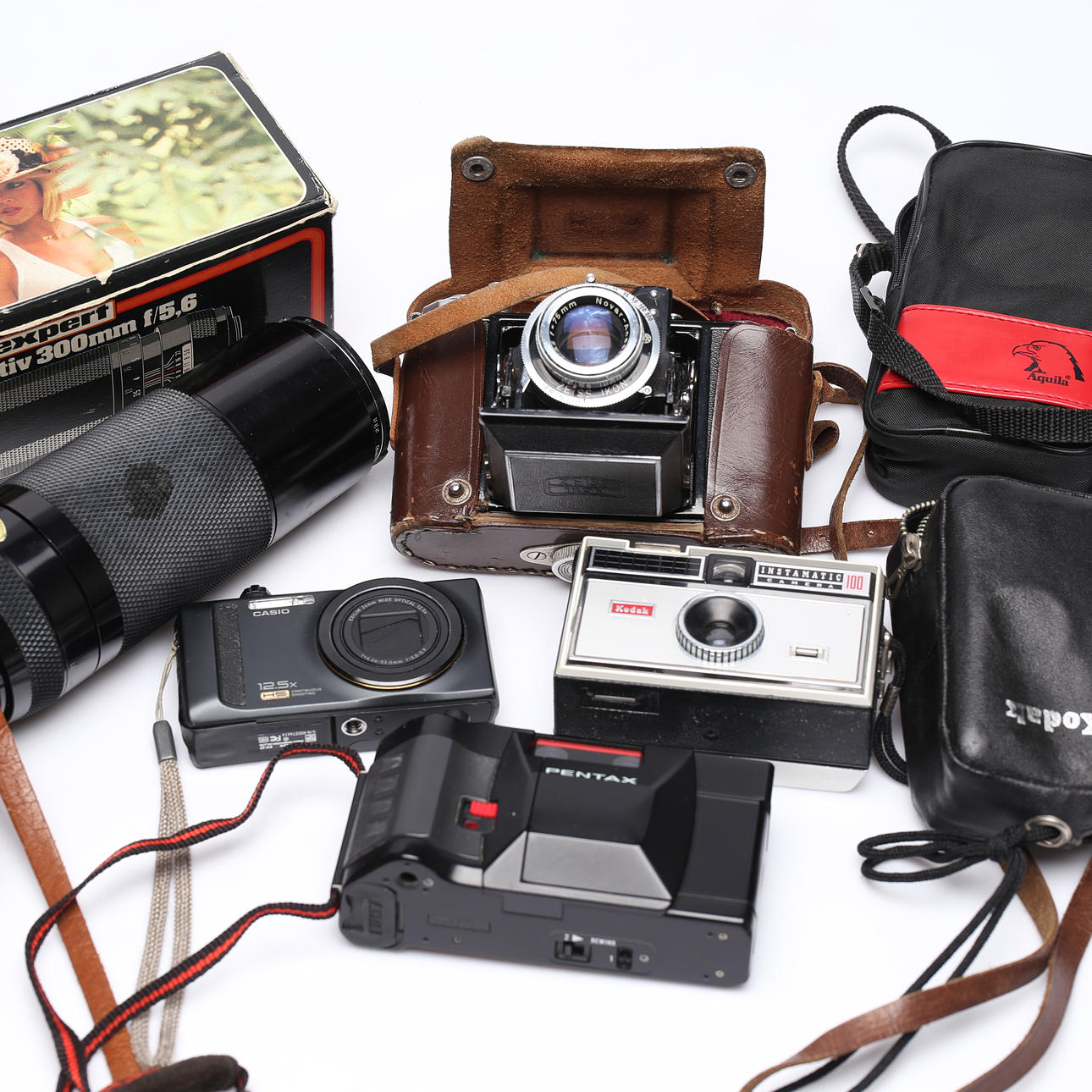 b.la. Aliluutnantti, Zeiss-kuvake ja Pentax. Mukana musiikkiteline ja teline.