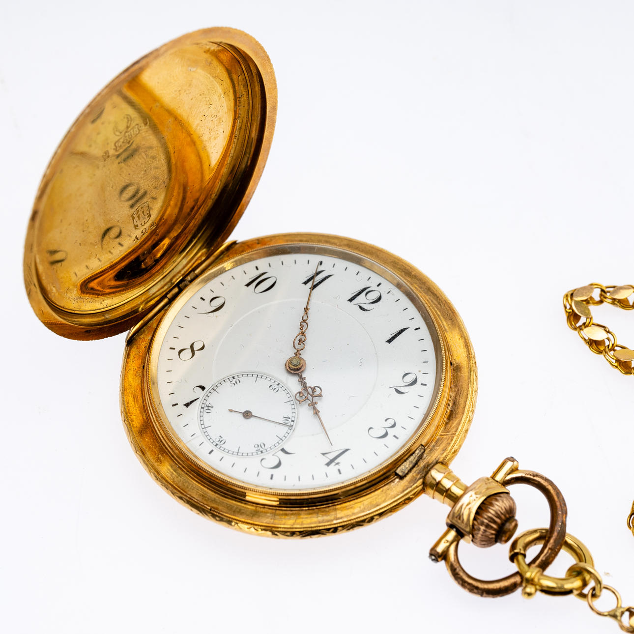 4374285. 585 kultainen taskukello ketjulla.