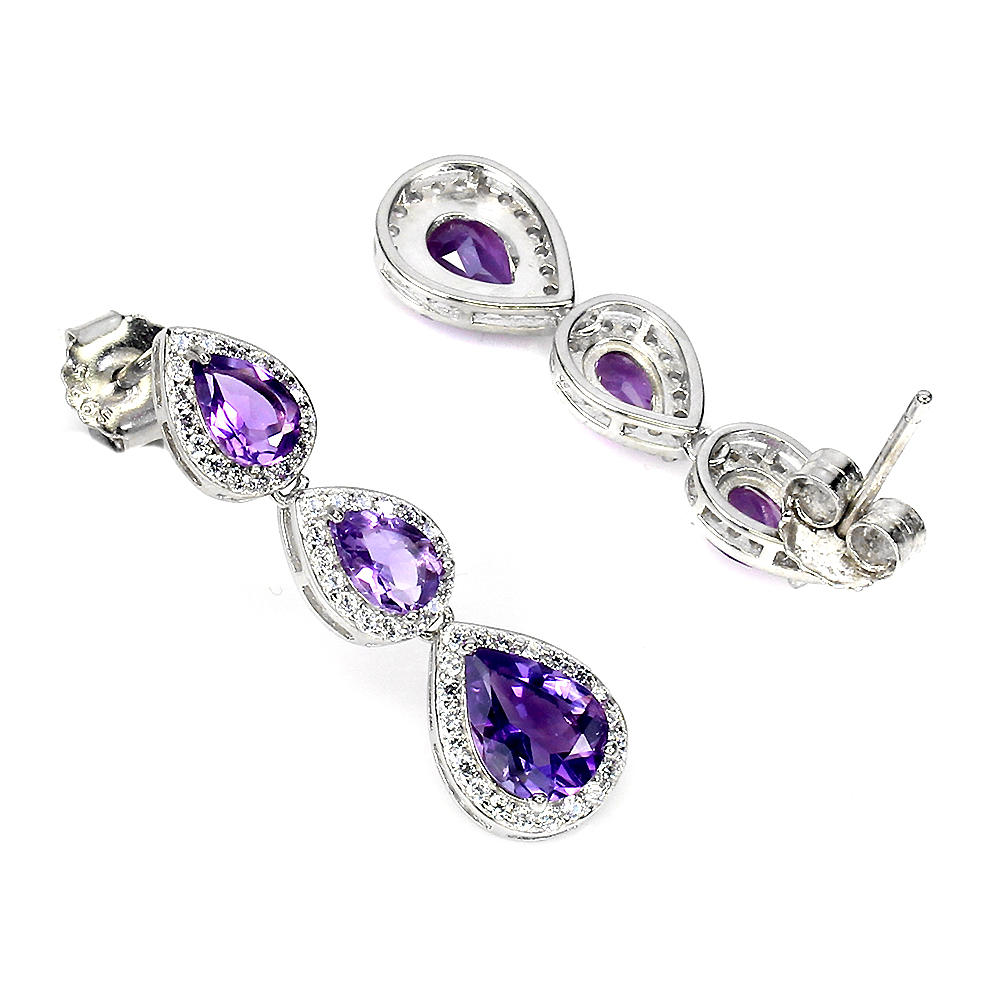 PISARAKORVAKORUPARI, 925 hopeaa, päärynähiotut ametistit ja valkoiset kivet, L. 2.9cm.