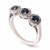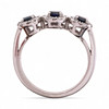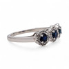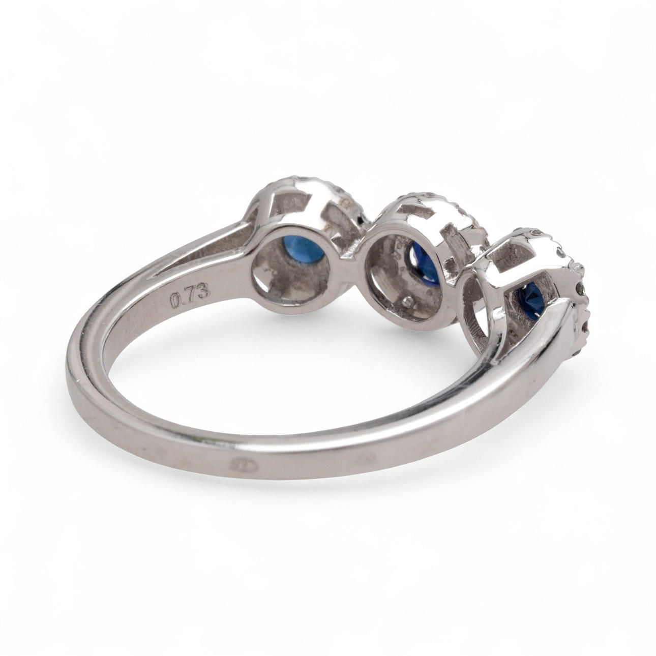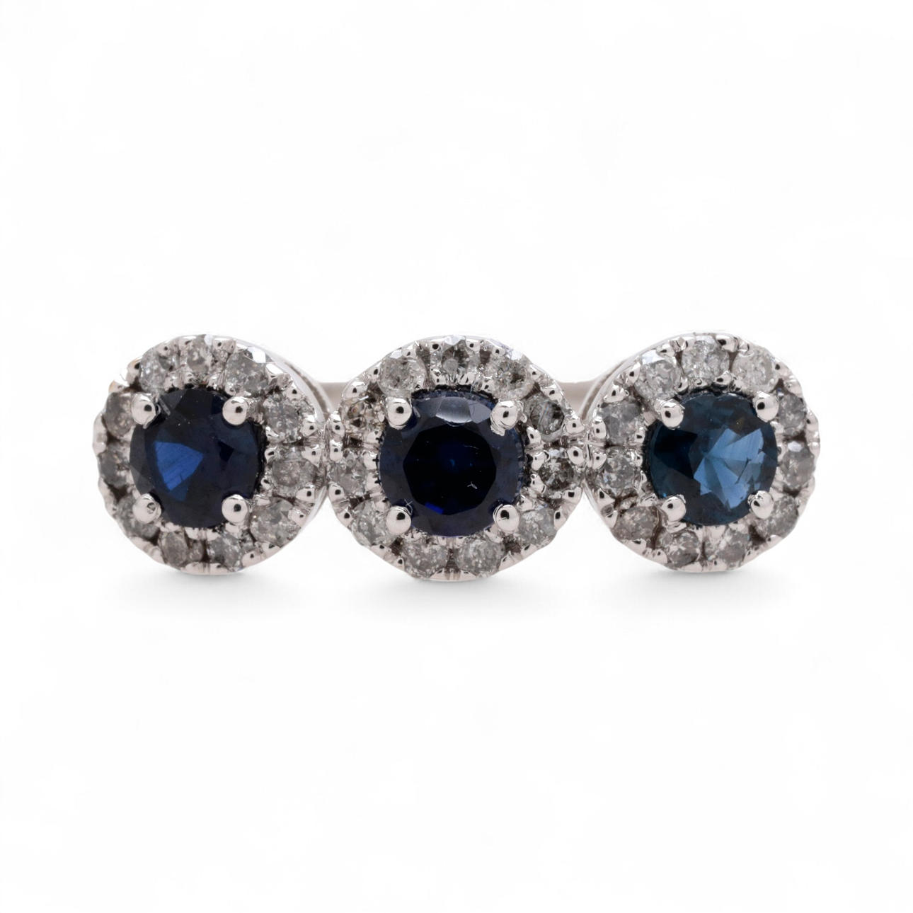 18K valkokultaa, briljantslipade diamanter, ca 0.26 ct. ja pyöreitä safiireja, n. 0,56 ct. Koko 14/54. 4,3 gr.