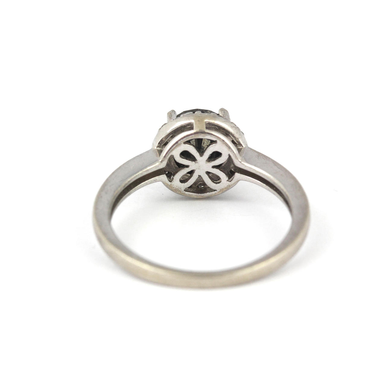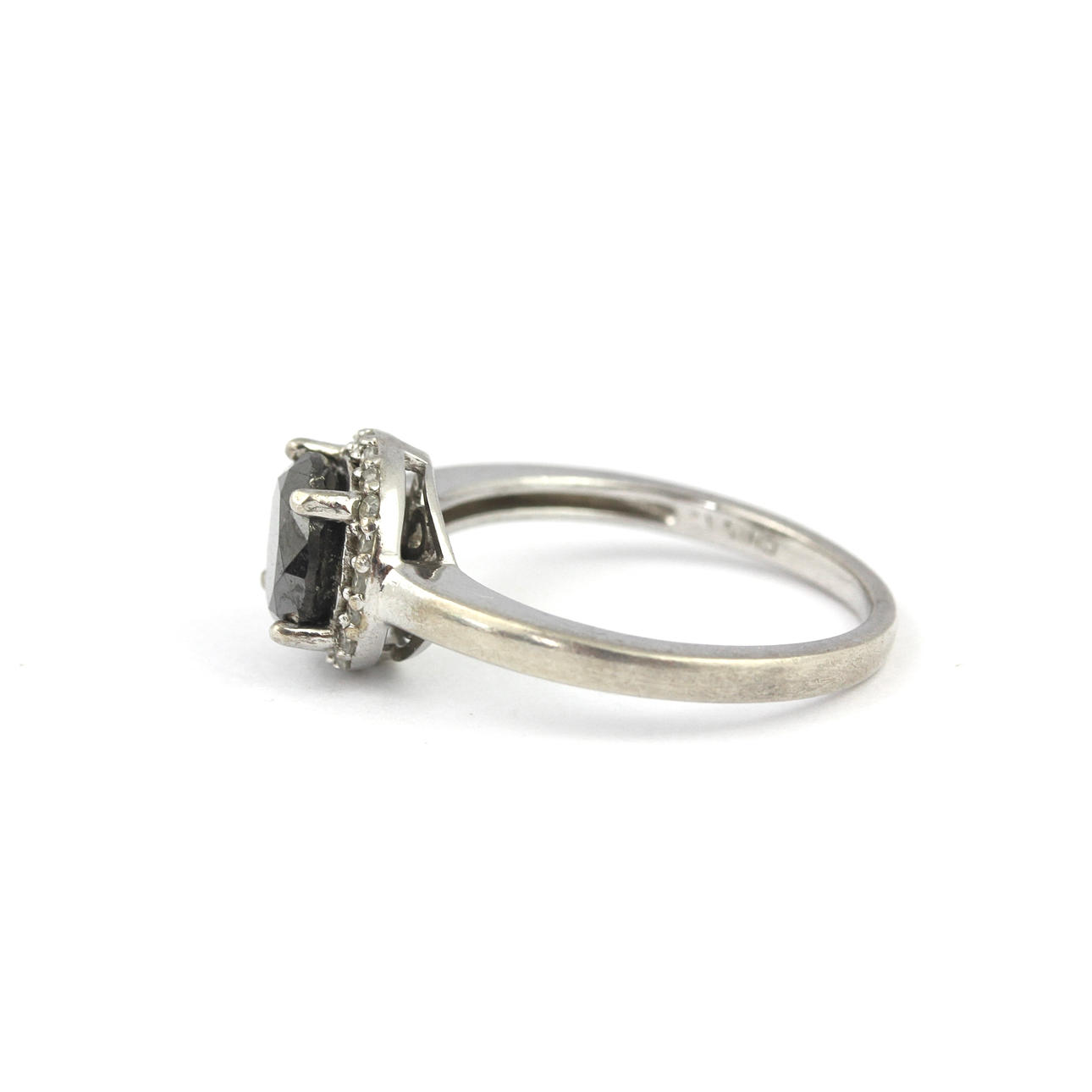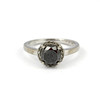 SORMUS, 925 hopeaa, briljanttihiottu hieno musta timantti, jota ympäröivät timantit, n. 1ct, rengaskoko O.