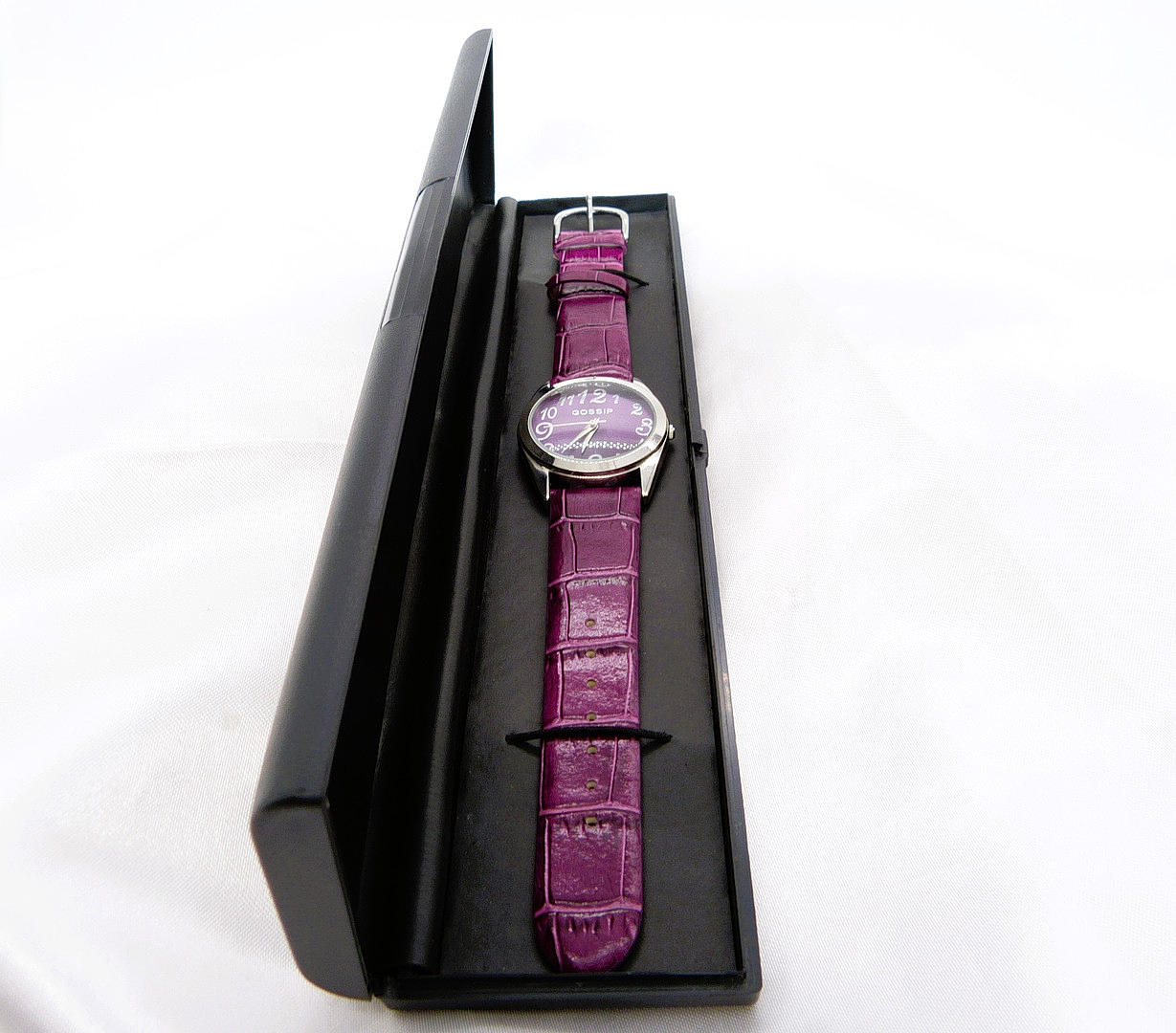 Naisten kello - Gossip, violetti käärmeennahkahihna. Kvartsiliike. Mukana alkuperäinen laatikko