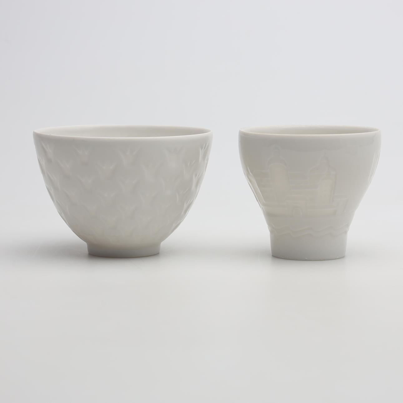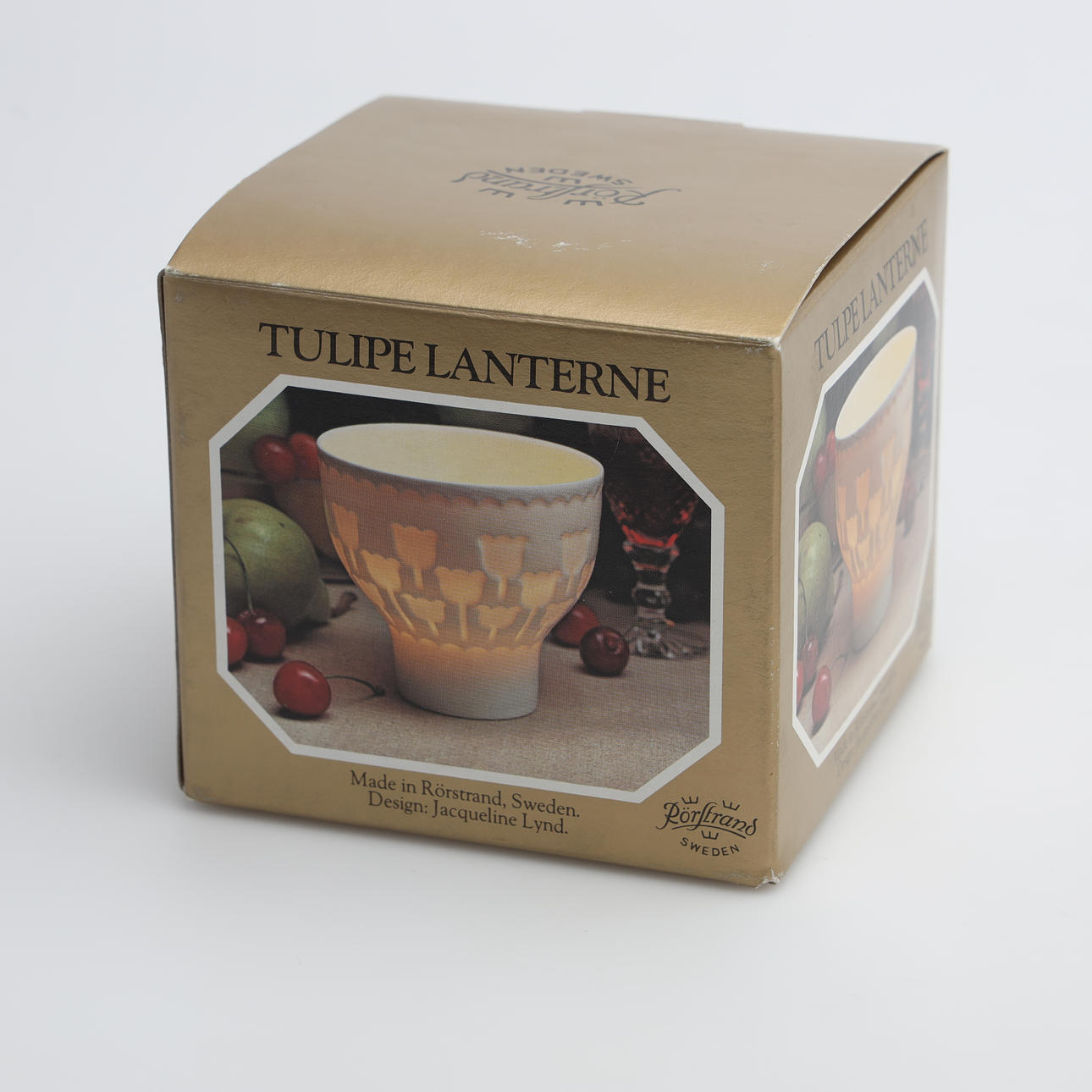 2 kpl valolyhtyjä ”Tulip”, korkeus 10 cm. 1 alkuperäinen laatikko. 4 kpl kulhot ”Kruunukulho”, korkeus 4,5-7,5 cm 1 kulho, korkeus 7,5 cm.