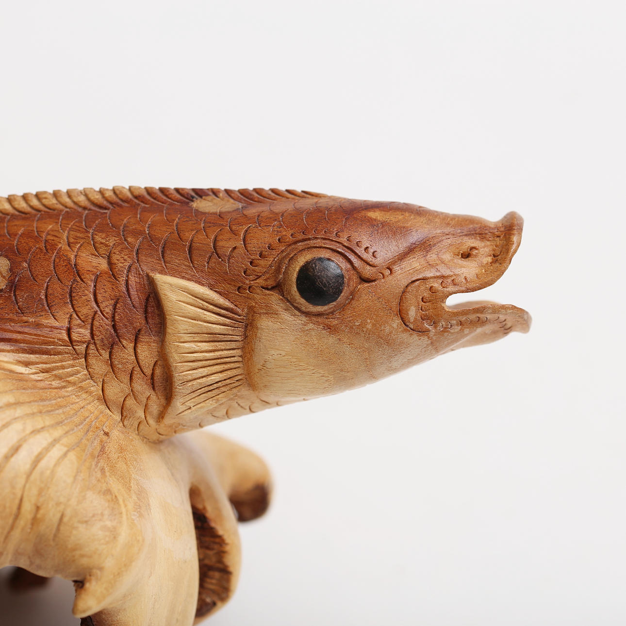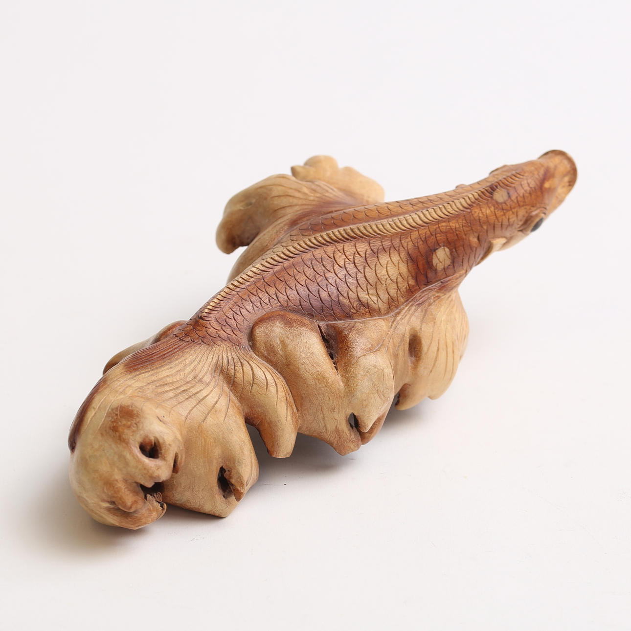 4385547. NETSUKE, veistos kalan muodossa, puu, Japani.