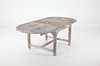Puutarhakalusteet, tiikki, Batavia, 1 pöytä sisäänrakennetulla ”perhoslevyllä” ja 6 tuolia taitettavalla selkänojalla.