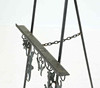 Taitettava. Korkeus noin 165 cm kallistettuna taitetulla jalalla Leveys noin 70 cm.