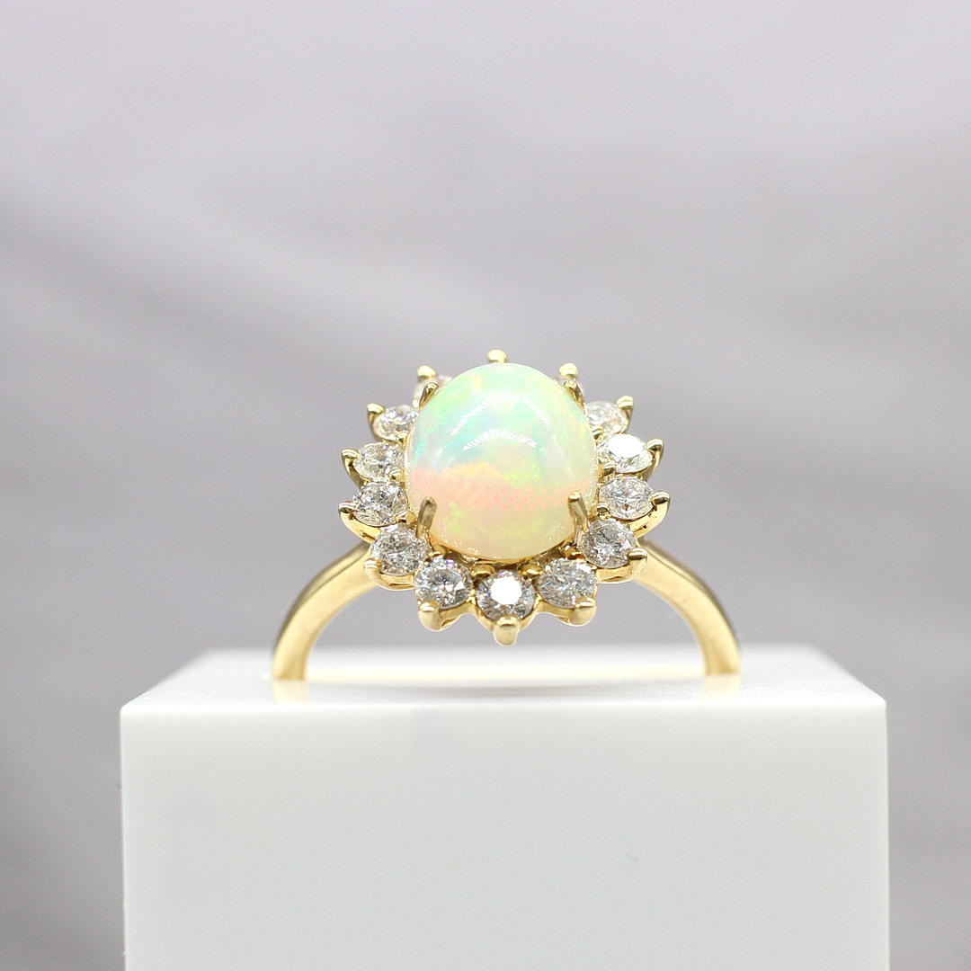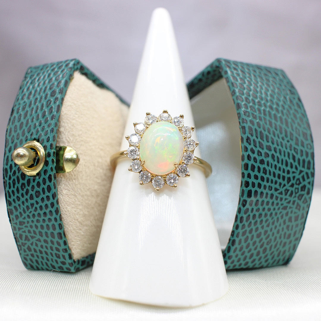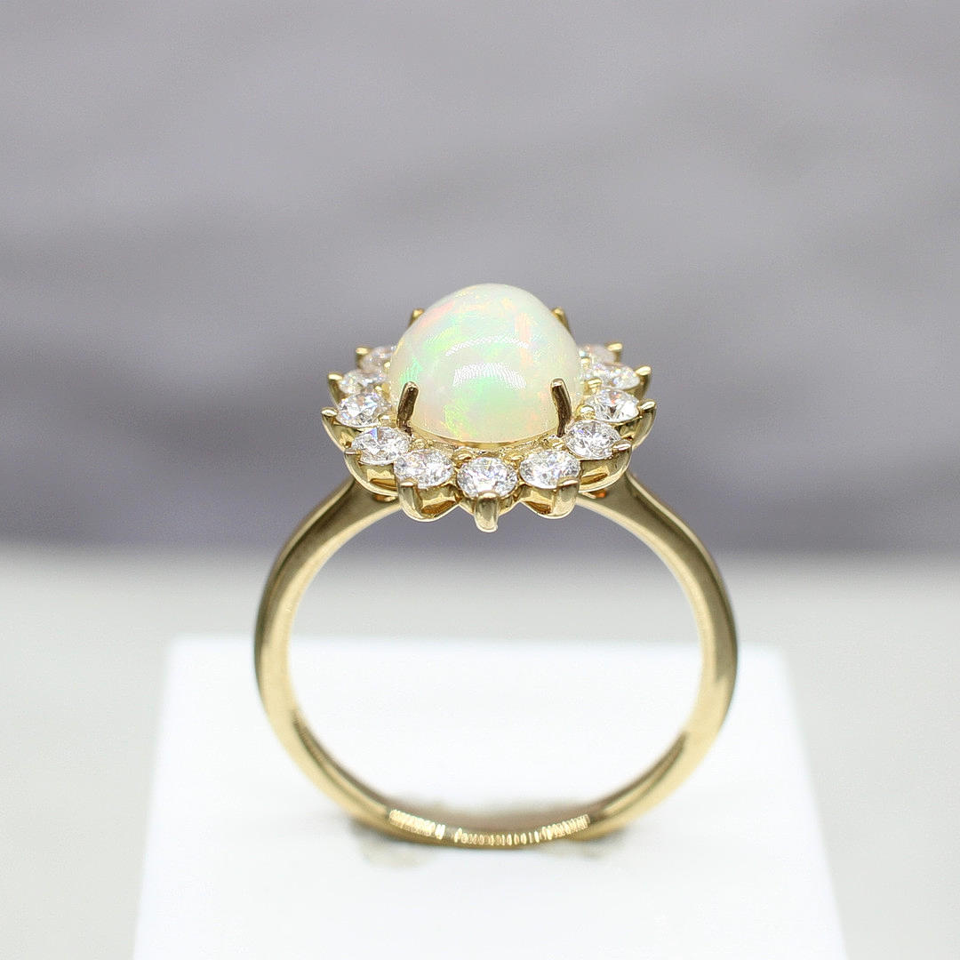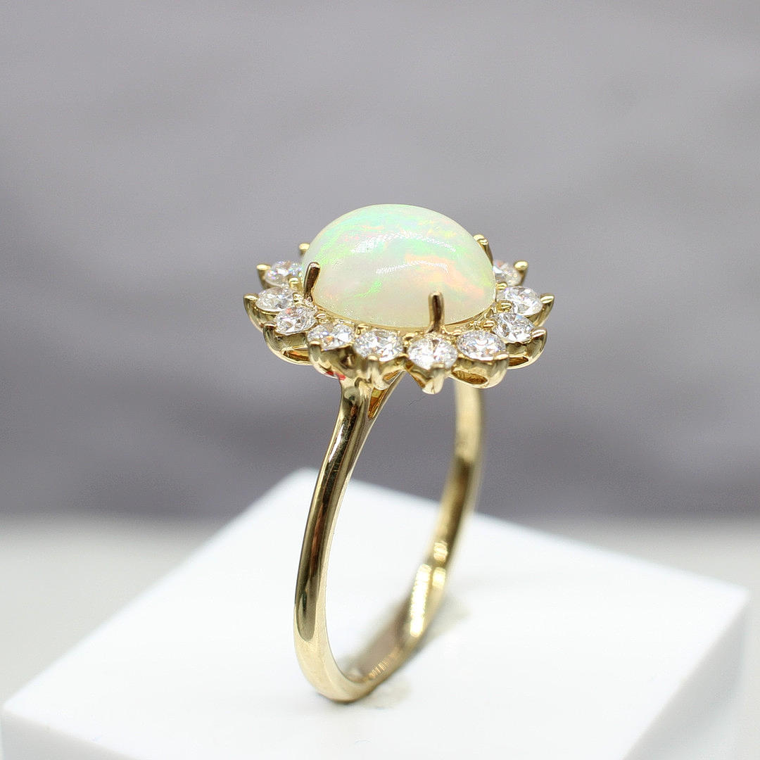 Cabochon-opaali- ja timanttiklusterirengas