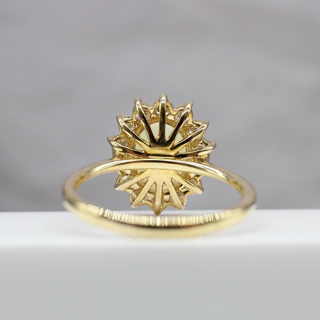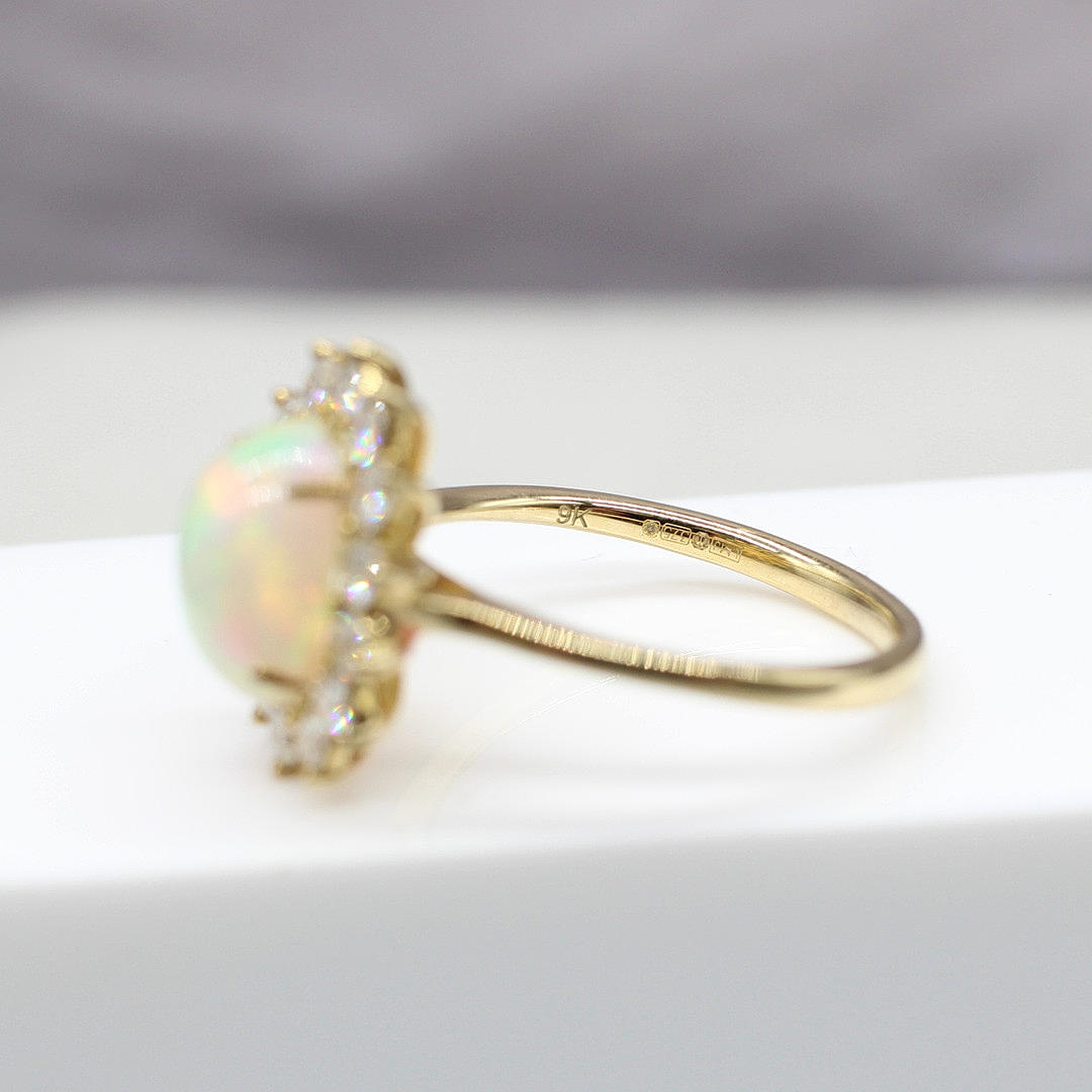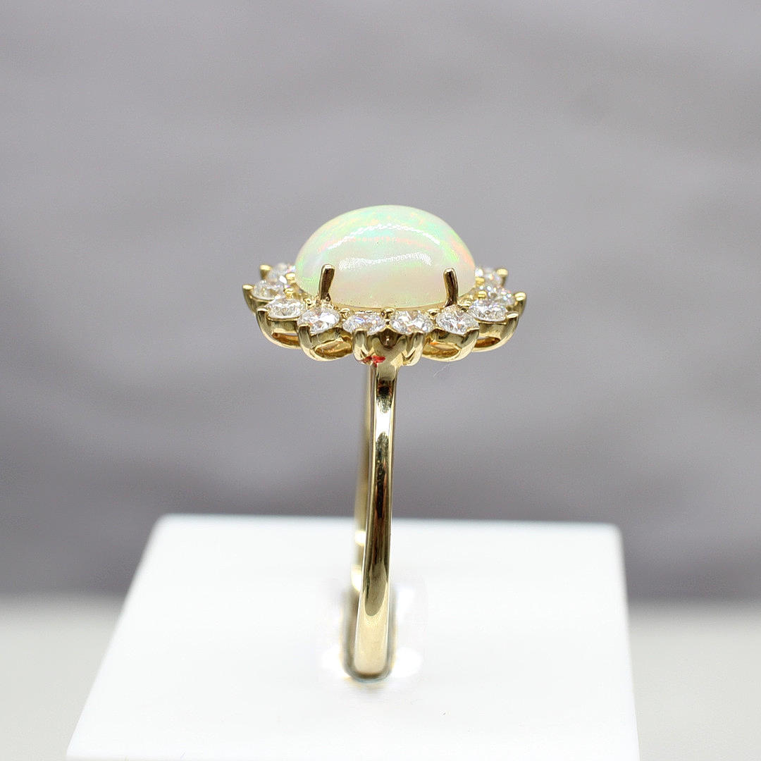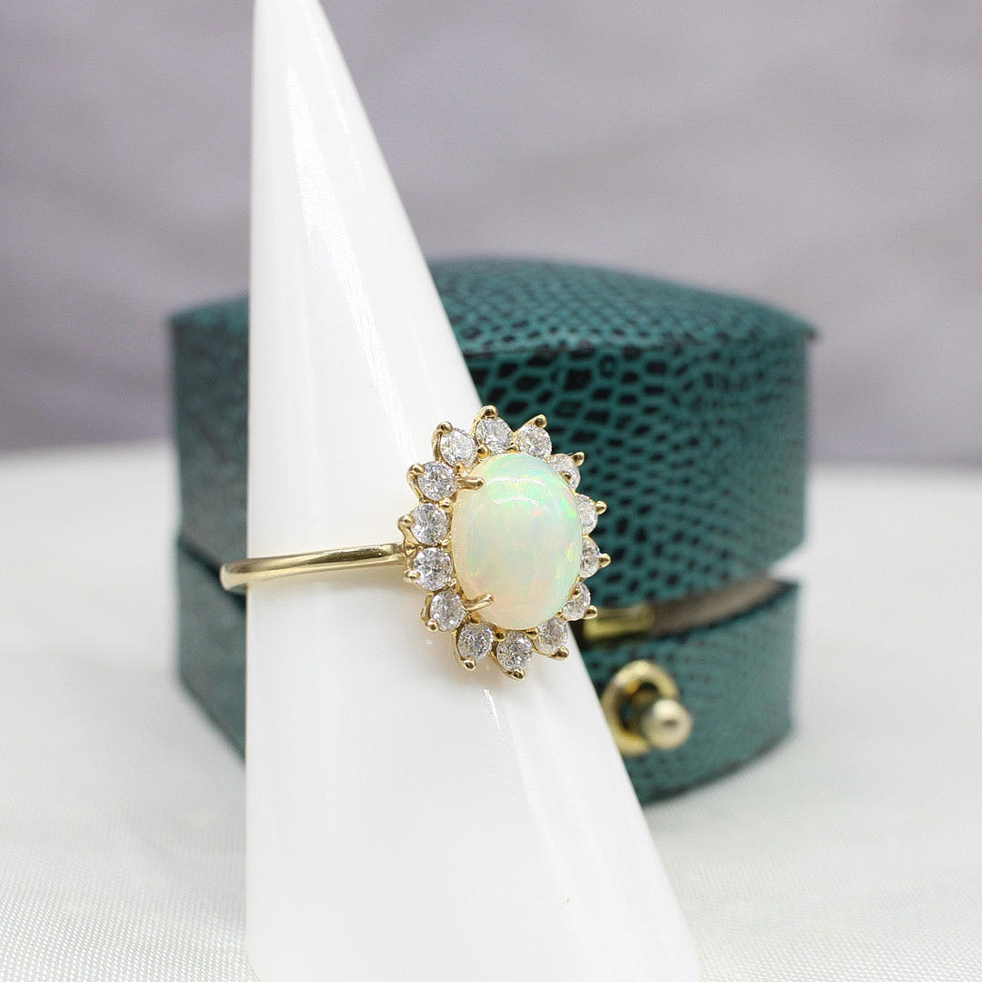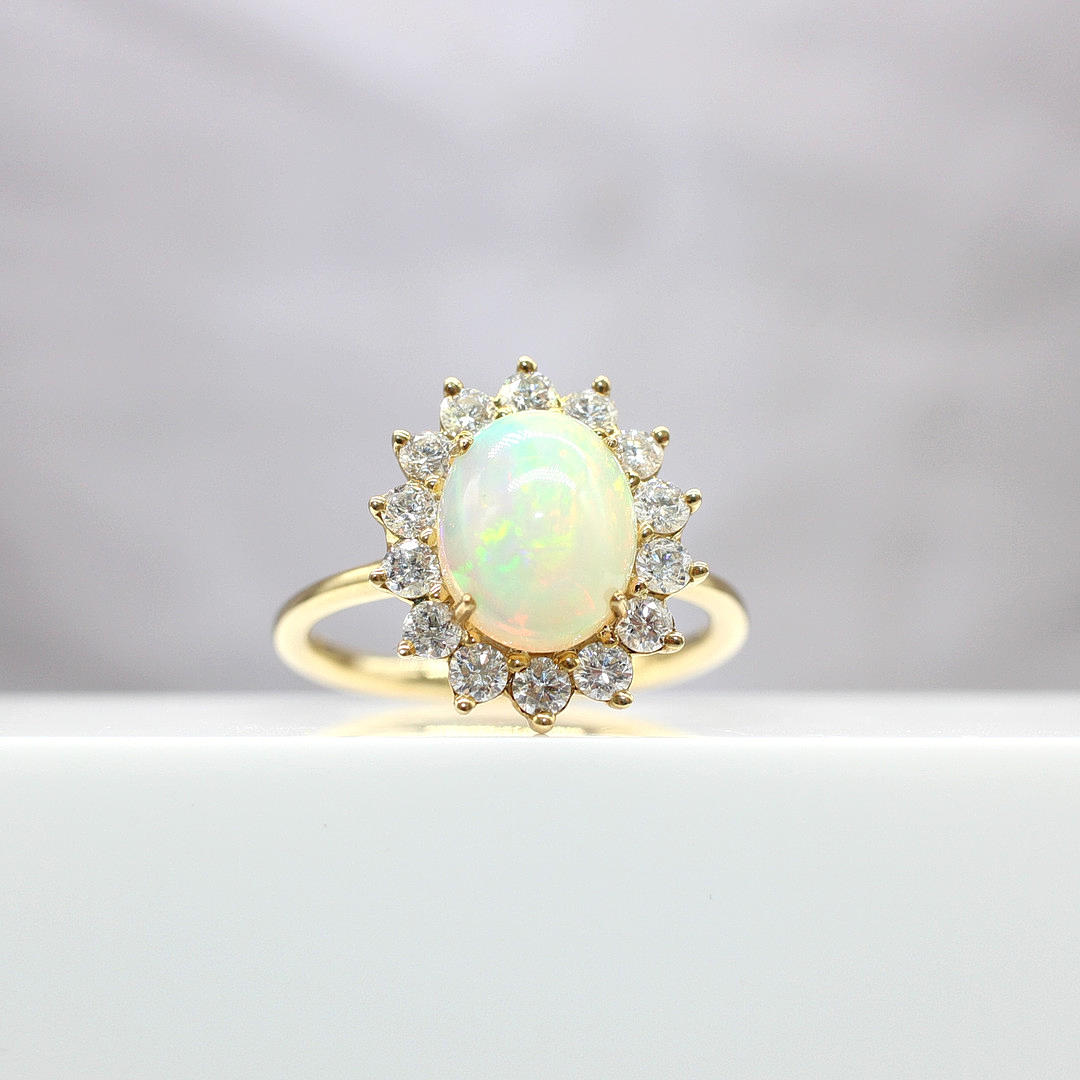 Cabochon-opaali- ja timanttiklusterirengas