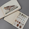 Kaksi kirjaa, joissa on kerätyt suunnitelmat lintulajeista ja linnunmunista.