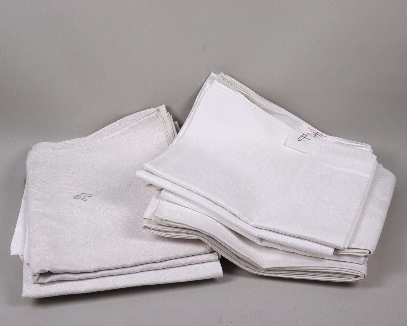 4391085. PÖYTÄLIINAT, pellava, damaski, 11kpl.