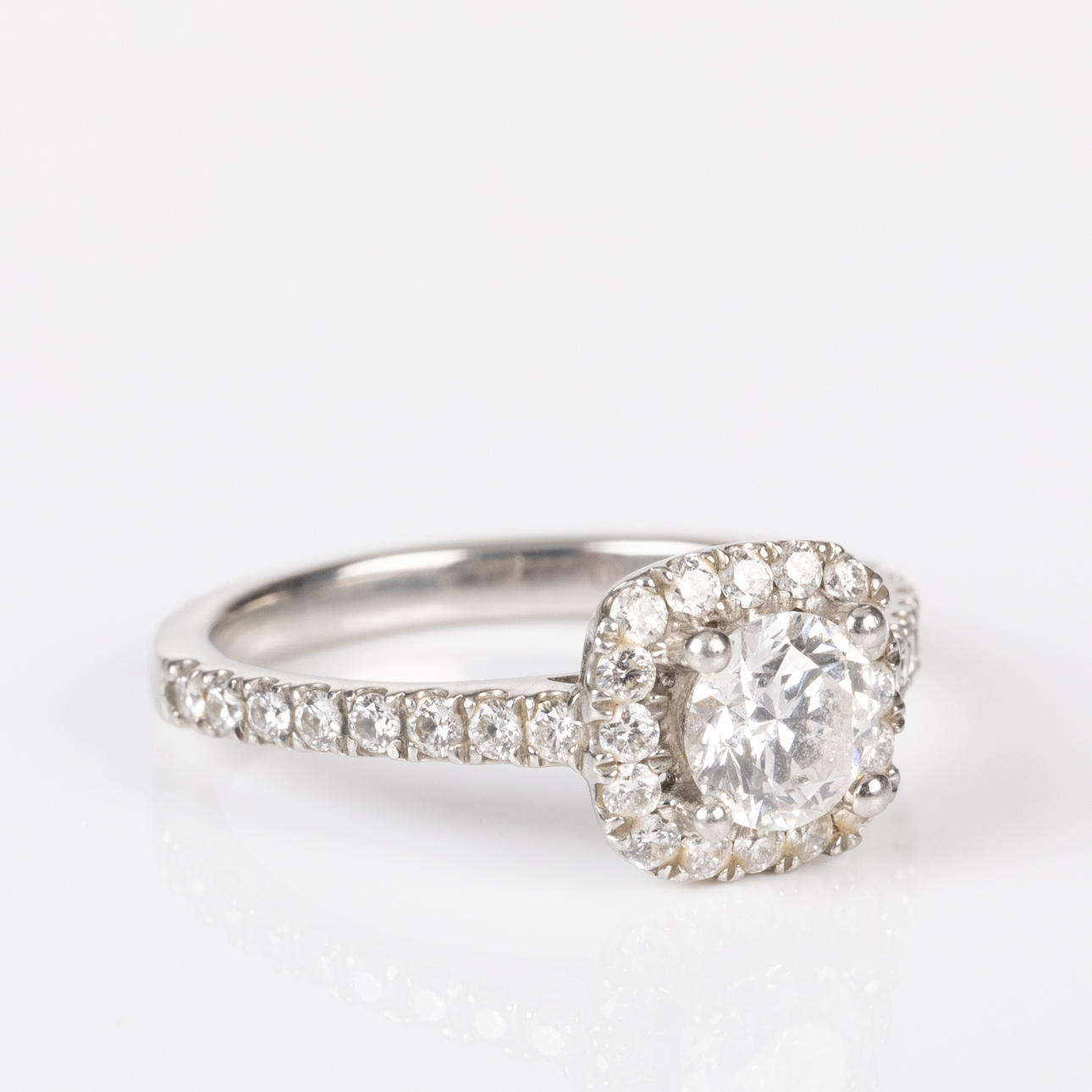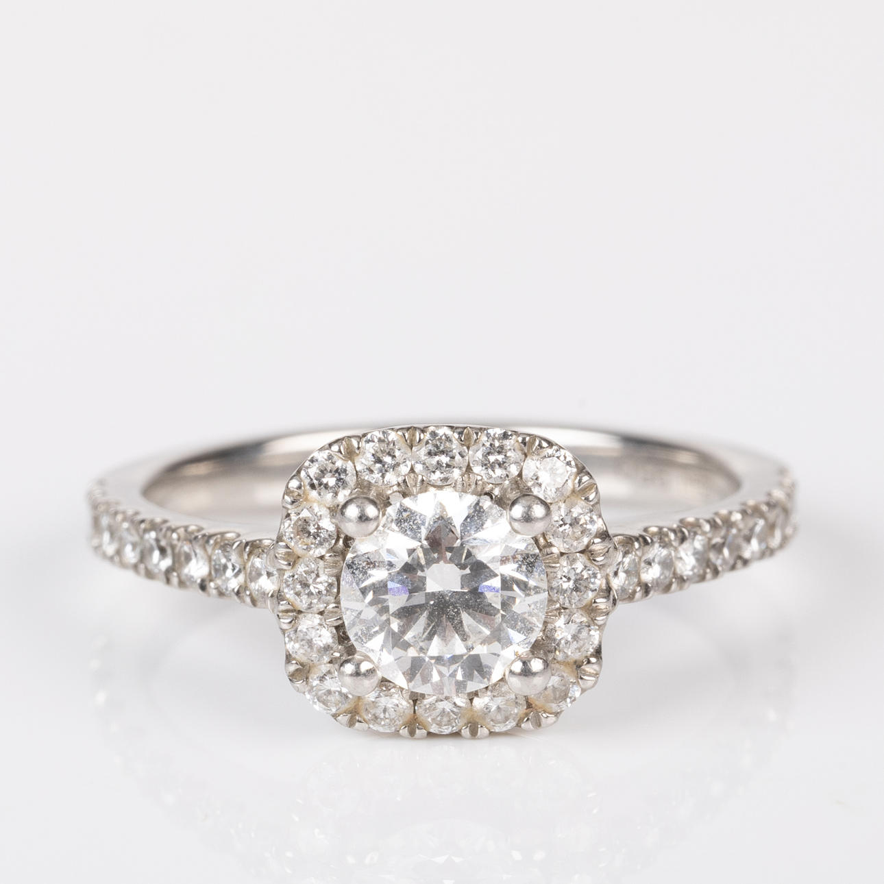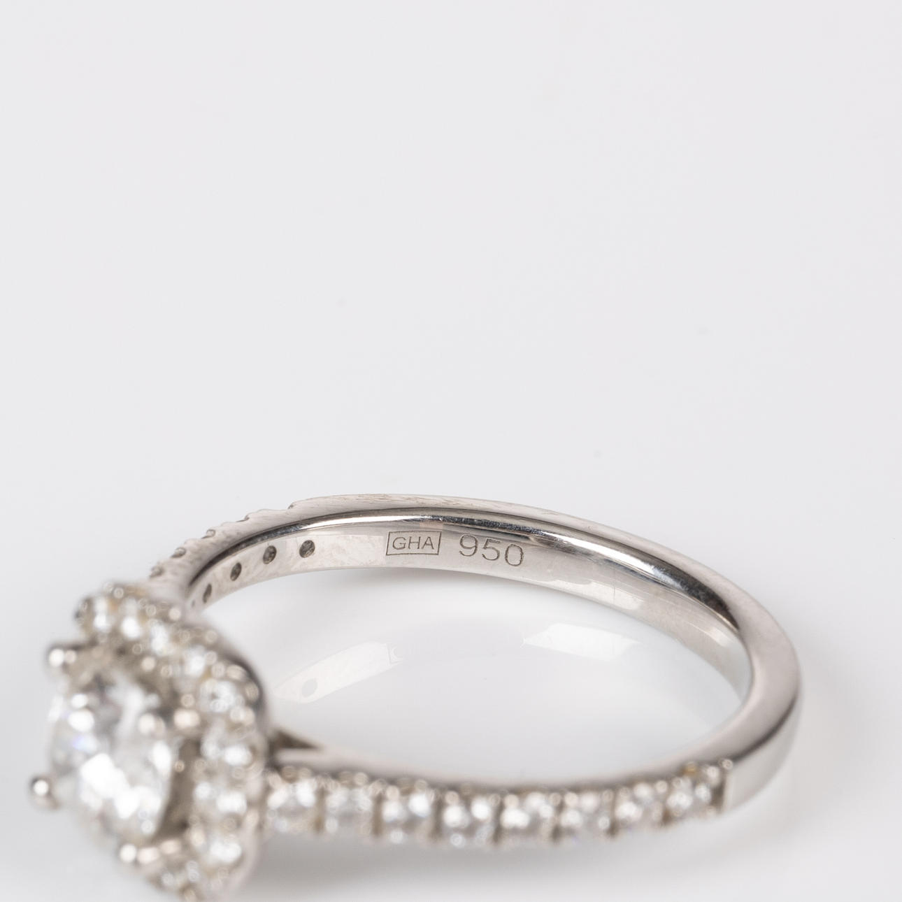 Sormus platinaa, briljanttihiottuja timantteja, yhteensä n. 0,85 ct