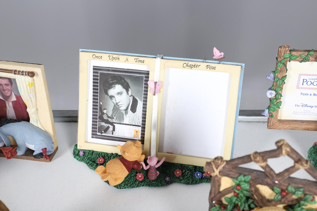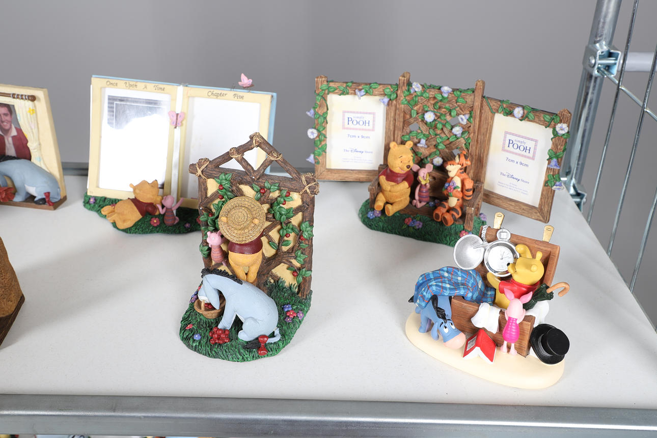 Erilaisia Disney Nalle Puh -aiheisia hahmoja, mukaan lukien neljä kaksinkertaista valokuvakehystä (korkein 17 cm korkea, 26 cm halkaisijaltaan), kellokoristeet (korkein 18,5 cm korkea) ja useita muita niihin liittyviä hahmoja.