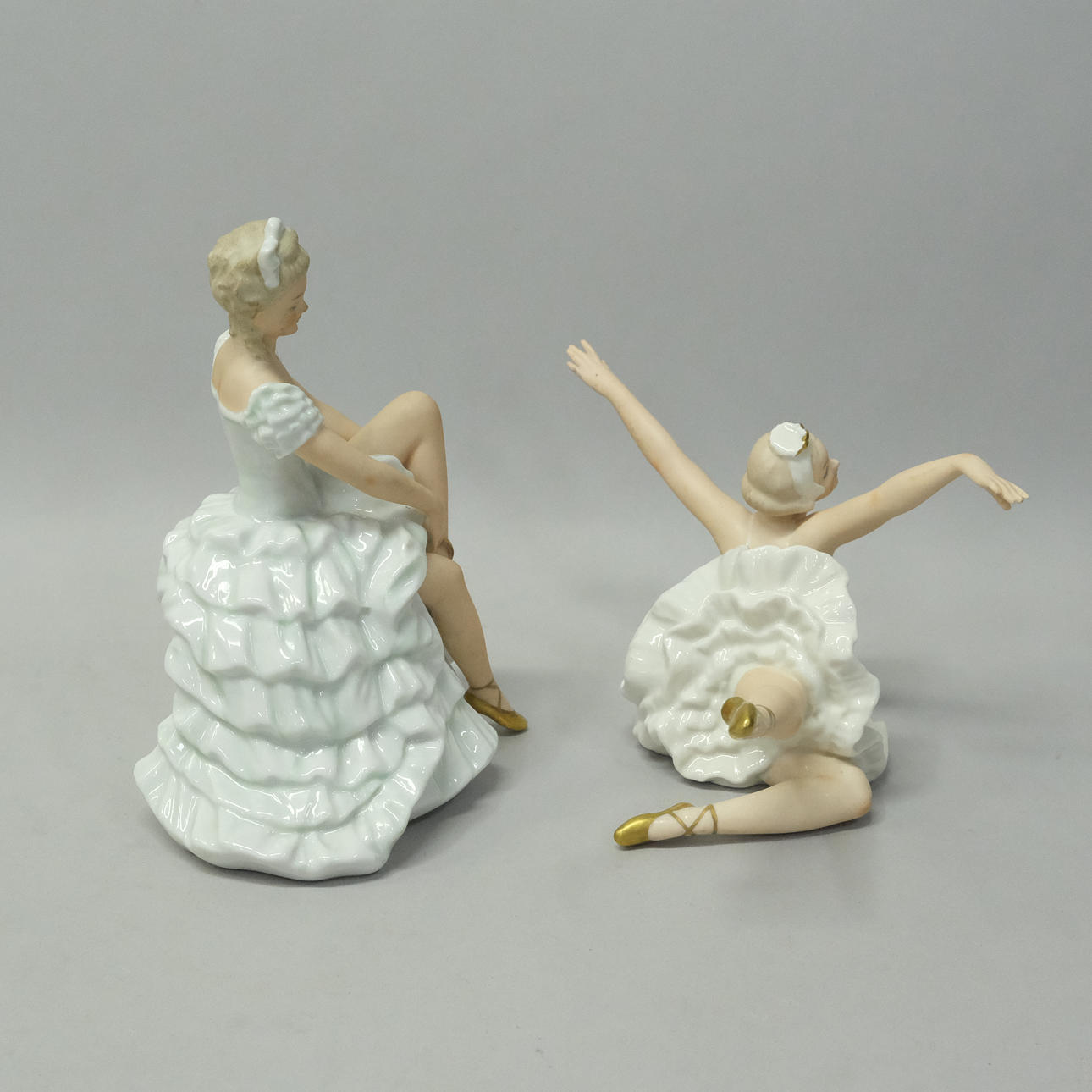 Kaksi ballerinaa, korkeus 10 ja 14cm, poika kitaralla, korkeus 12,5cm ja Istuva nainen, korkeus 17cm.