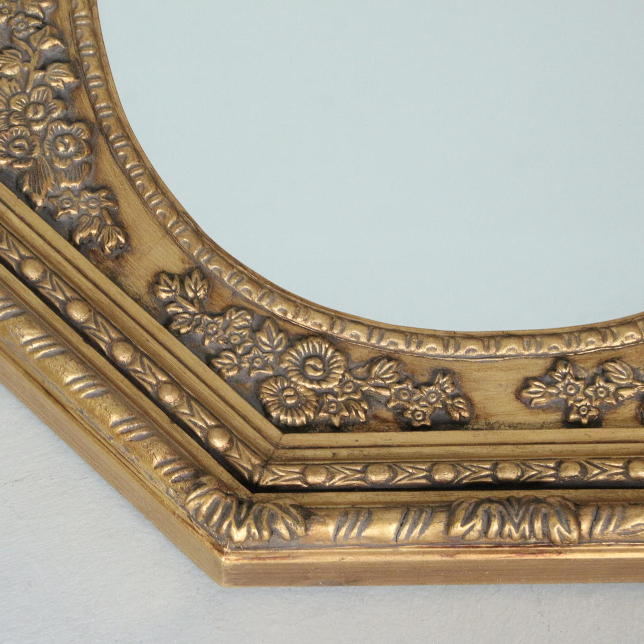 kahdeksankulmainen peili/seinäpeili, stukki/puurunko kullanvärisellä maalilla,