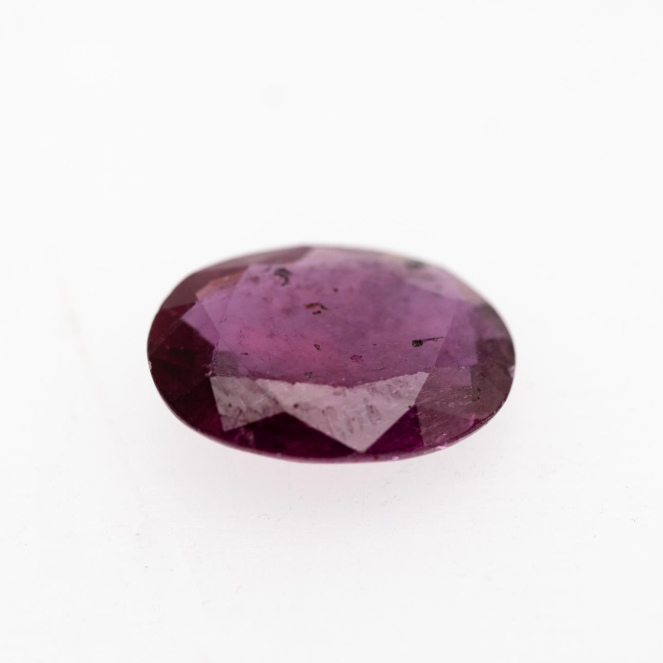 Luonnollinen rubiini, leikkaus: soikea sekaleikkaus, mitat n. 9,20 x 6,89 x 2,79 mm Paino: n. 1,70 ct. Sisältää todistuksen.