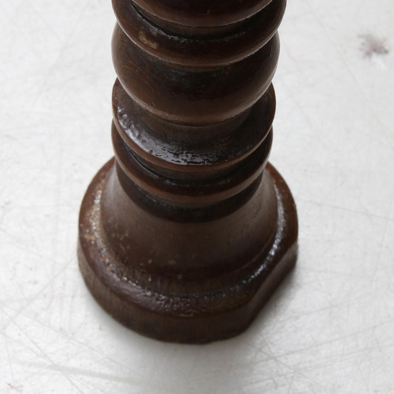 Kulumista, tahroja, arpia. Jaloissa pieniä vammoja.