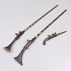 Revolverin pituus noin 55 cm Kivääri 2 kpl pituus noin 160 cm.