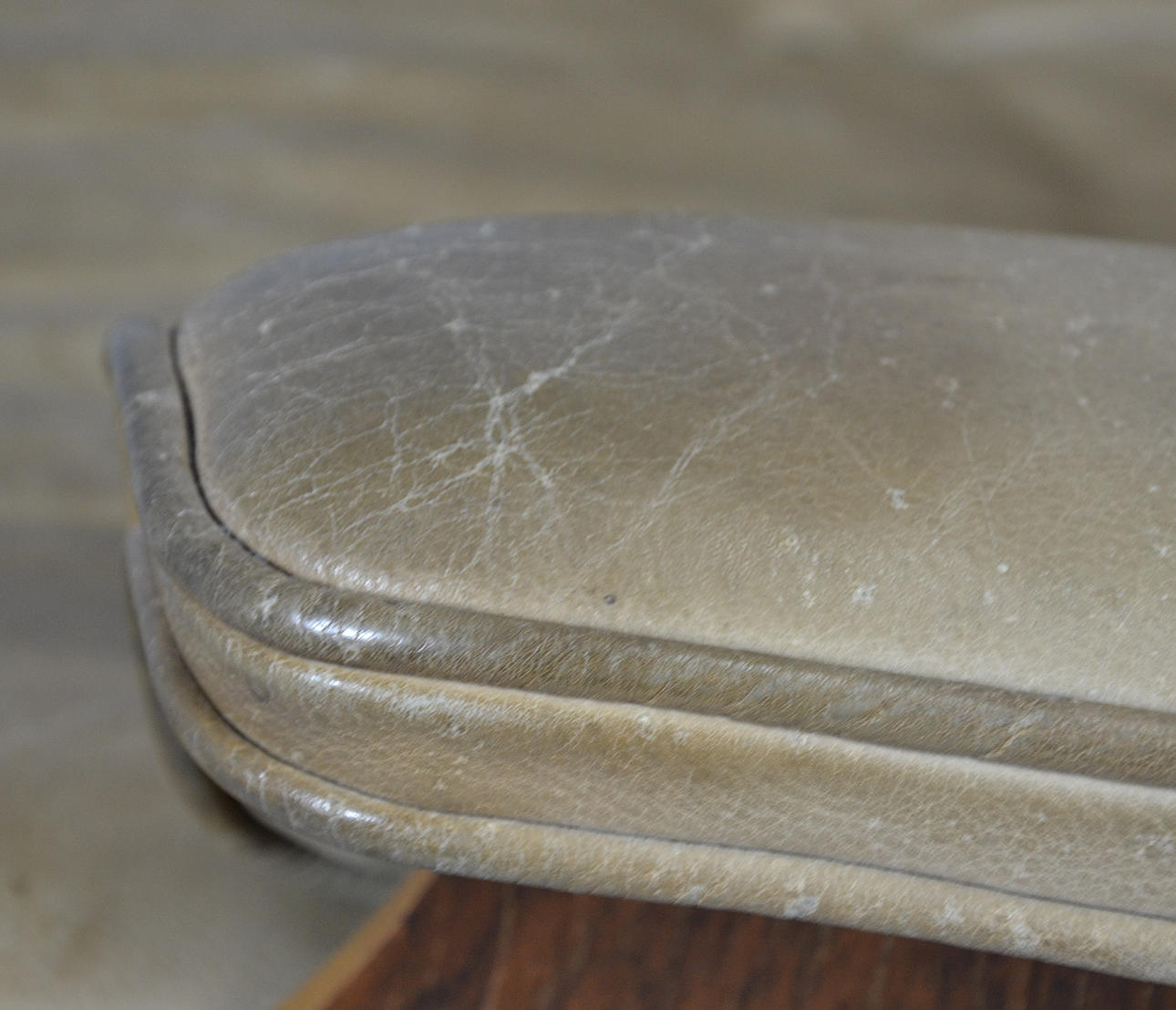 Tuoli on käytetty. Pieniä käytön jälkiä löytyy. Pieniä reunalastuja viilussa kuorien reunoilla. Tyynyissä on patinaa, mutta se on hyvässä kunnossa.