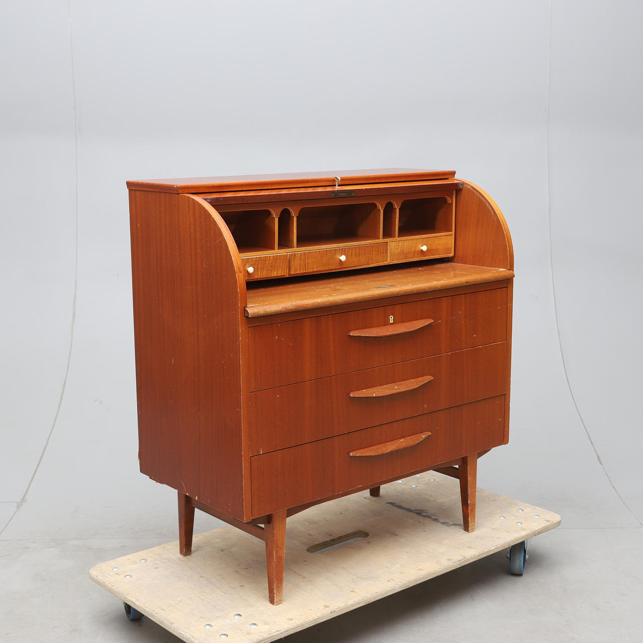 Korkeus n. 97, pituus noin 90, leveys noin 47cm. Merkitty.
