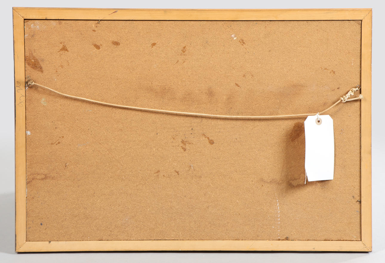 Öljy levylle, signeerattu ja päivätty 76 vasemmalla alhaalla, sijoitettu kullattuun kehykseen 65 cm x 45 cm, mukaan lukien kehys 59,5 cm x 39 cm kuvakoko.