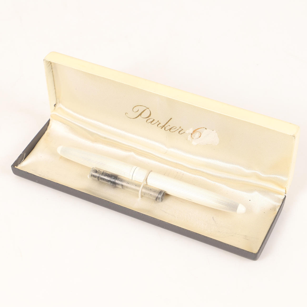 Pituus n. 13,5 cm Parkerin kotelossa, noin 17,5 x 5 cm.