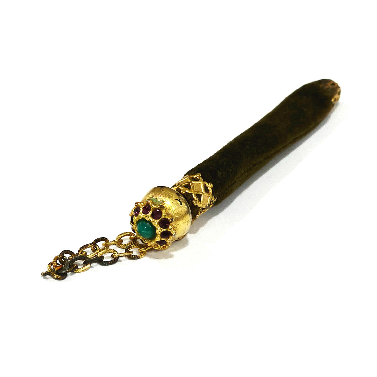 4445959. Kultainen metallikynä samettikannella.