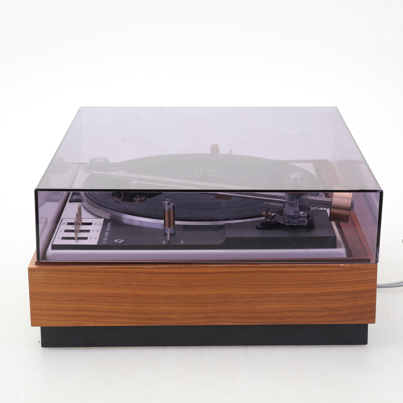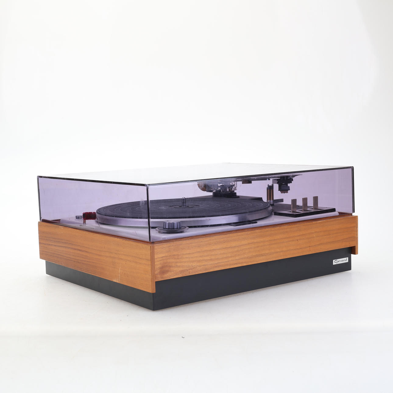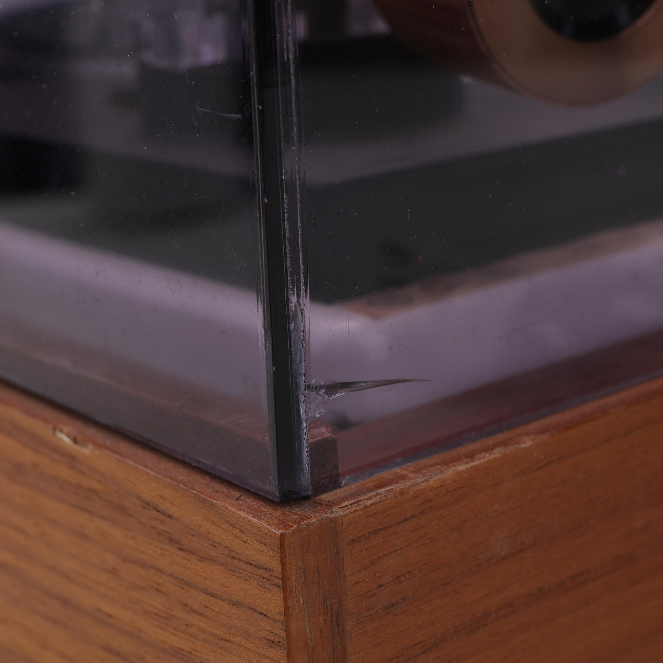 Ympärillä tiikkiviilu ja muovinen kansi. mukana nouto ja neula. Korkeus 17,5 cm Pituus 41 cm, Syvyys 36 cm.