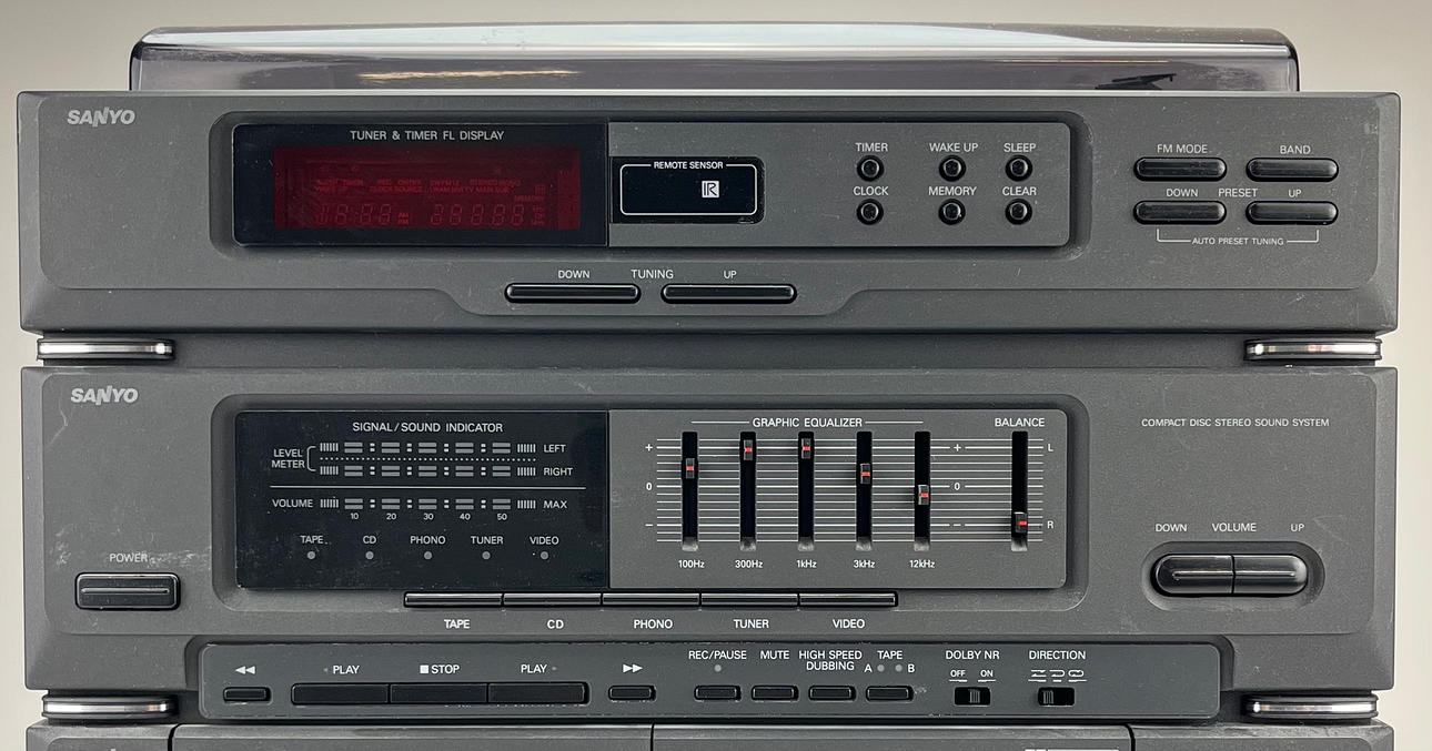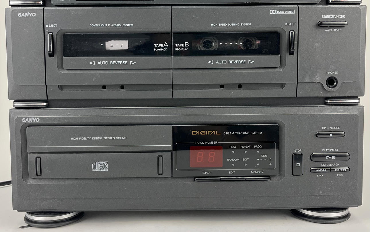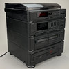 Levysoitin, radio, CD-soitin, kasettisoitin. Pituus n. 36, leveys 35, korkeus 43 cm.
