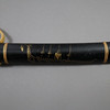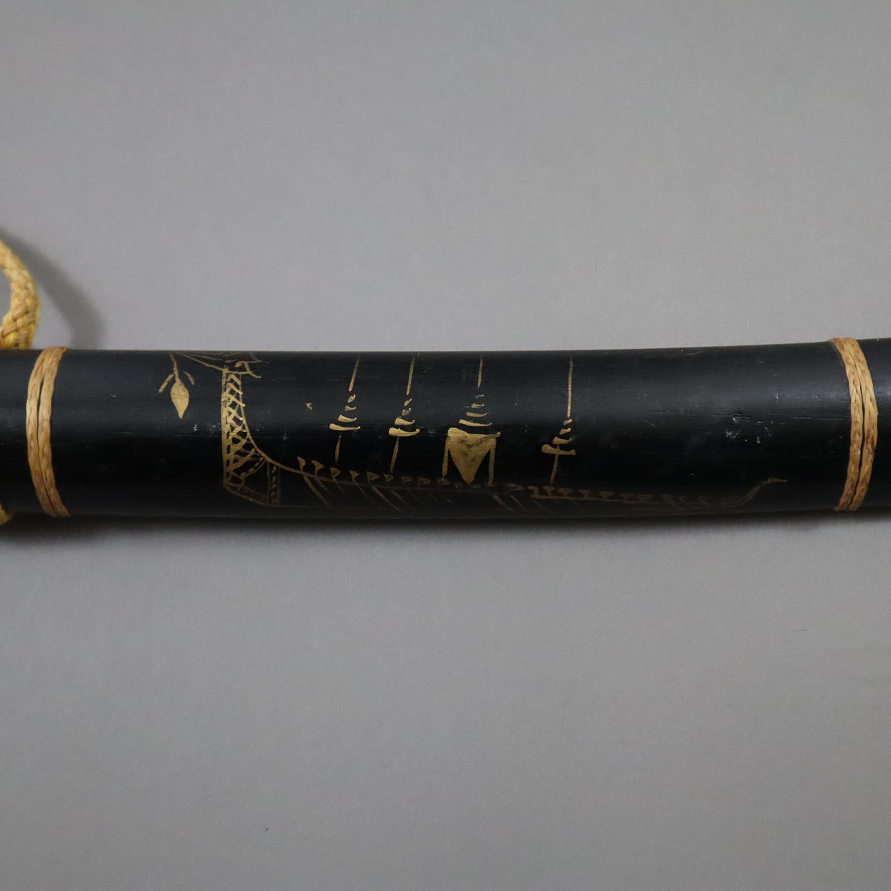 pitkä puinen kahva ja vaippa kultalakkakoristeella,
