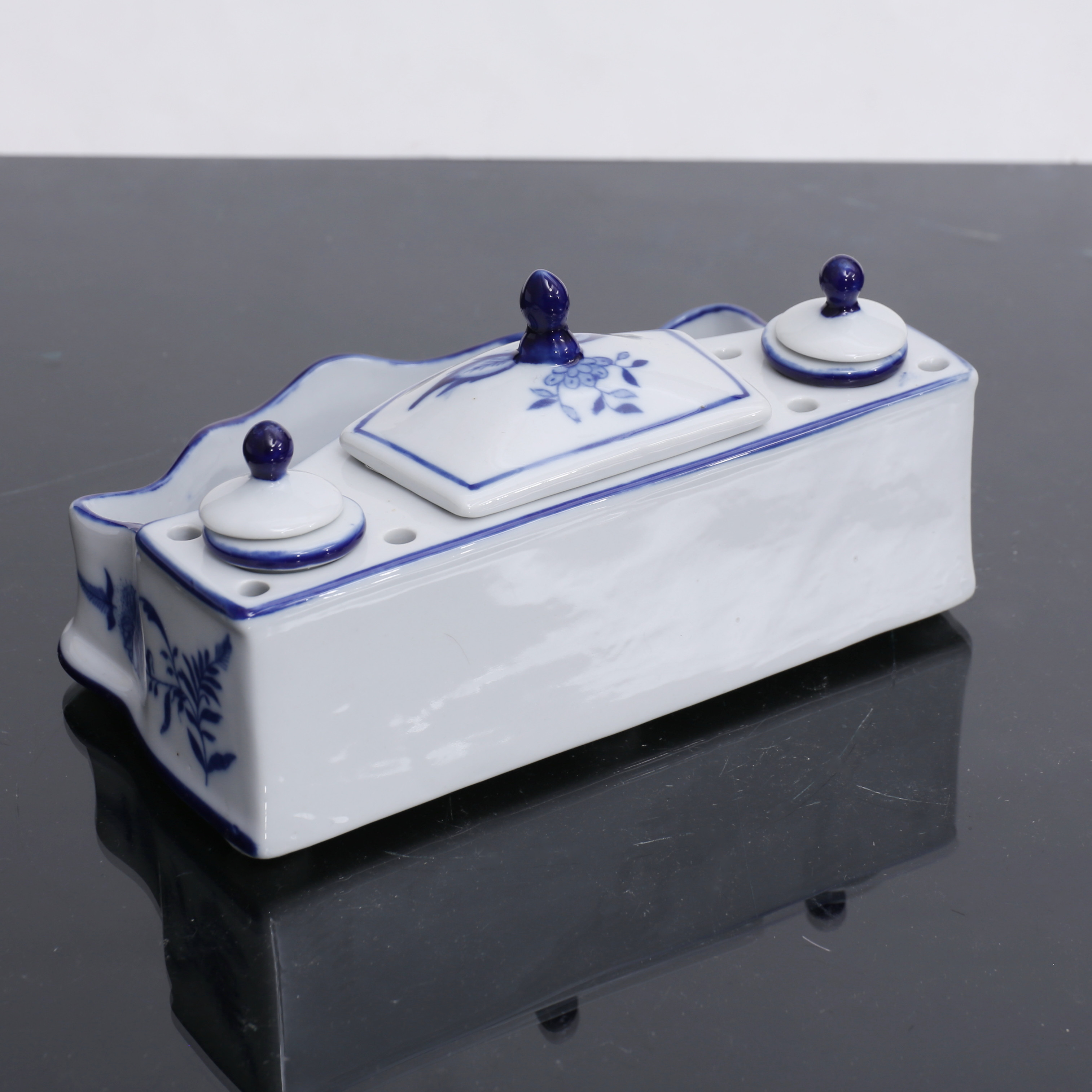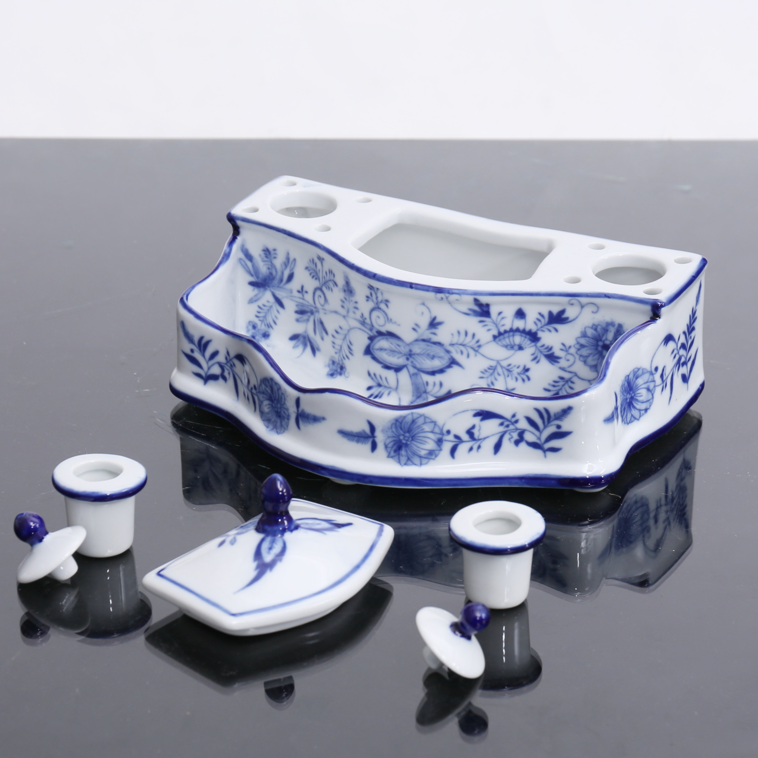 4485200. KIRJOITUSTELINE, posliini, sipulikuvio.