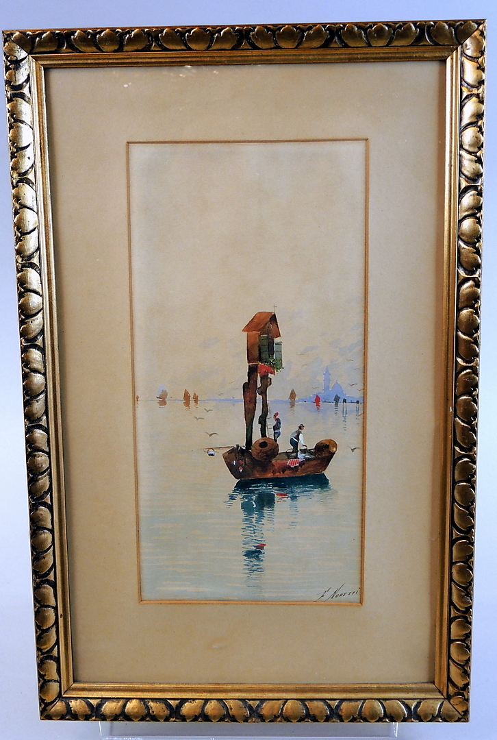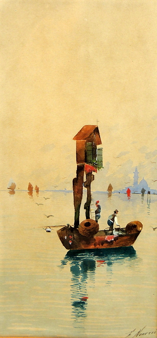 449304. F. NORETTI. AKVERIVÄRI, NÄKYMÄ VENETSIASSA.